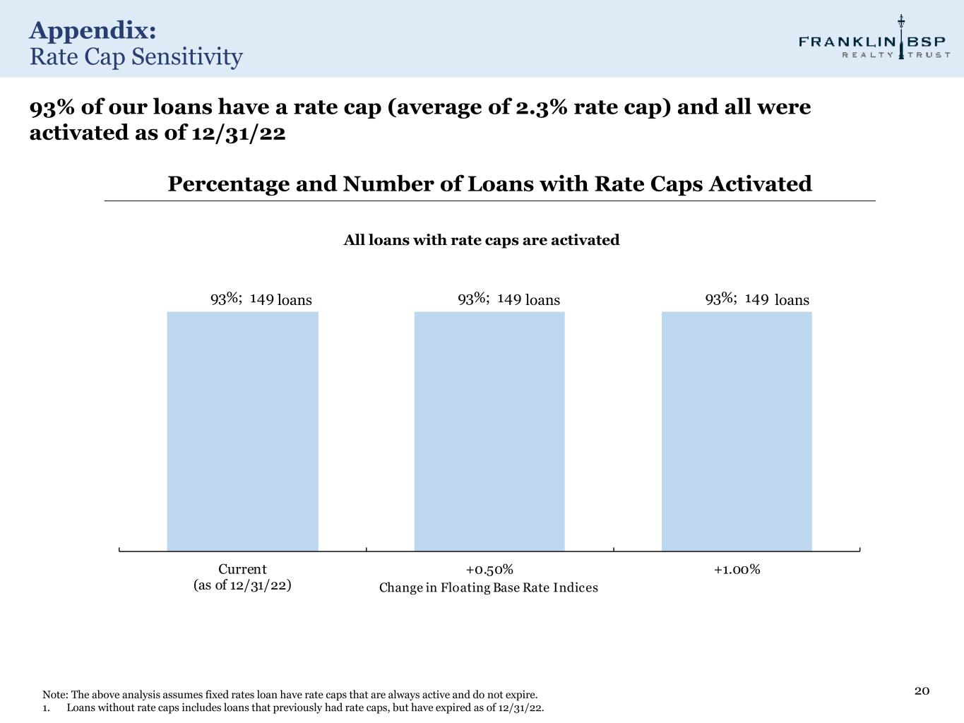Appendix: Rate Cap Sensitivity 20Note: The above analysis assumes fixed rates loan have rate caps that are always active and do not expire. 1. Loans without rate caps includes loans that previously had rate caps, but have expired as of 12/31/22. 93%; 149 93%; 149 93%; 149 Current (as of 12/31/22) +0.50% +1.00% Change in Floating Base Rate Indices All loans with rate caps are activated 93% of our loans have a rate cap (average of 2.3% rate cap) and all were activated as of 12/31/22 Percentage and Number of Loans with Rate Caps Activated loans loans loans