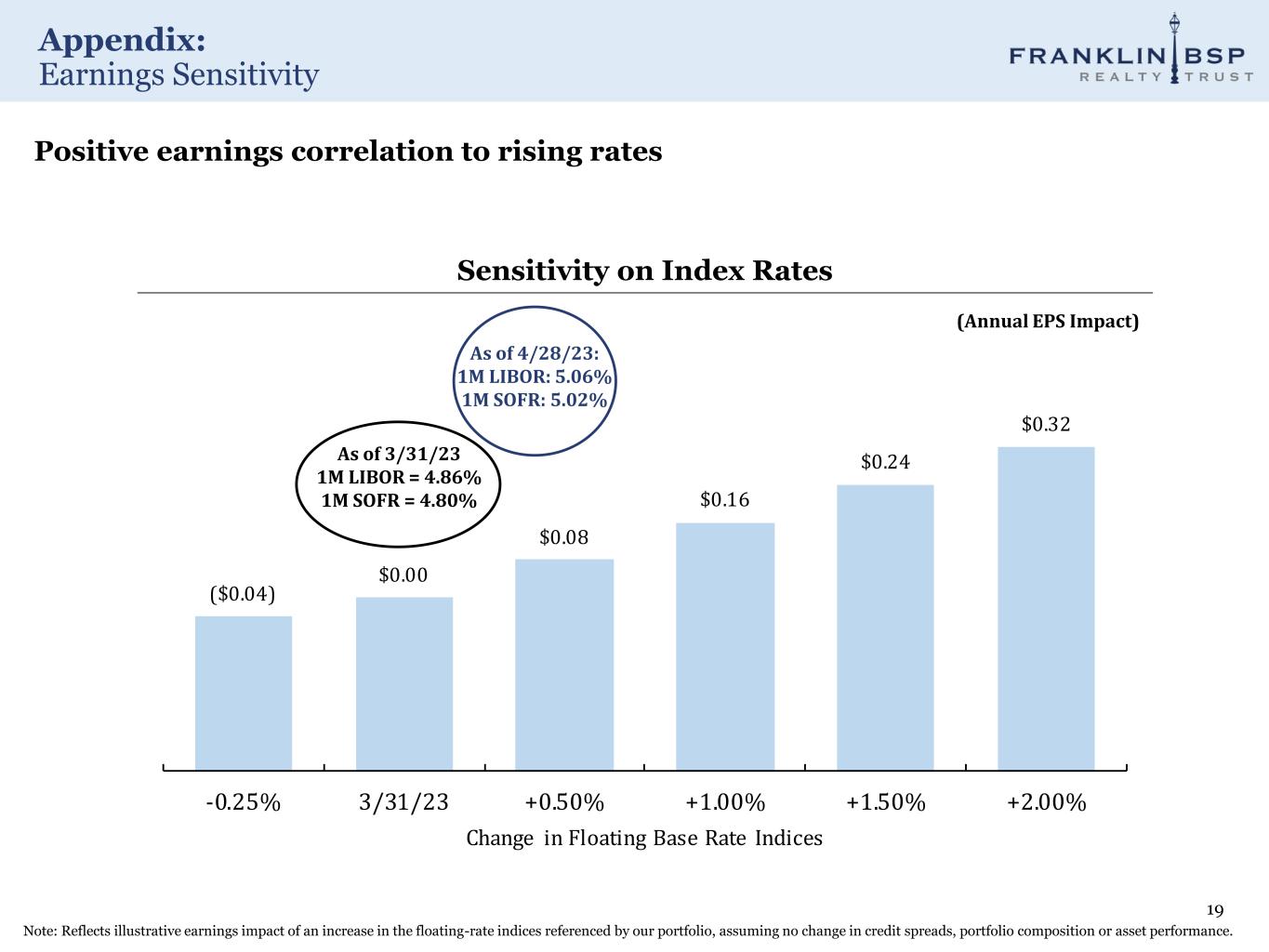 Appendix: Earnings Sensitivity 19 Note: Reflects illustrative earnings impact of an increase in the floating-rate indices referenced by our portfolio, assuming no change in credit spreads, portfolio composition or asset performance. ($0.04) $0.00 $0.08 $0.16 $0.24 $0.32 -0.25% 3/31/23 +0.50% +1.00% +1.50% +2.00% Change in Floating Base Rate Indices Positive earnings correlation to rising rates Sensitivity on Index Rates (Annual EPS Impact) As of 4/28/23: 1M LIBOR: 5.06% 1M SOFR: 5.02% As of 3/31/23 1M LIBOR = 4.86% 1M SOFR = 4.80%