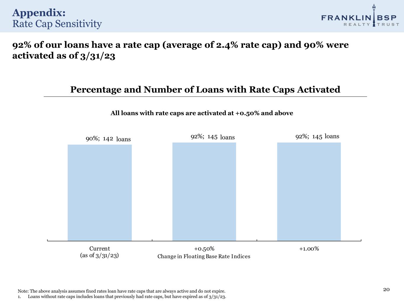 Appendix: Rate Cap Sensitivity 20Note: The above analysis assumes fixed rates loan have rate caps that are always active and do not expire. 1. Loans without rate caps includes loans that previously had rate caps, but have expired as of 3/31/23. 90%; 142 92%; 145 92%; 145 Current (as of 3/31/23) +0.50% +1.00% Change in Floating Base Rate Indices All loans with rate caps are activated at +0.50% and above 92% of our loans have a rate cap (average of 2.4% rate cap) and 90% were activated as of 3/31/23 Percentage and Number of Loans with Rate Caps Activated loans loans loans