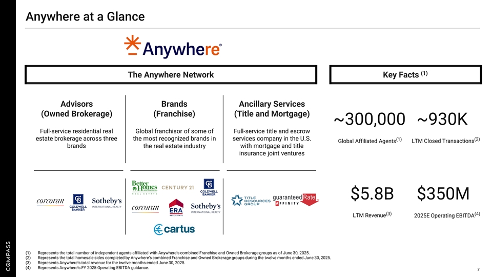 Delivering a Superior Experience for All Stakeholders For Home Sellers & Home Buyers A simplified and more seamless real estate transaction, powered by expert agent advisors and an integrated digital experience. For Agents An expanded referral network and platform to grow their business, deliver an exceptional client experience, and enhance productivity. For Broker-Owners and Franchisees A diverse collection of brands and offerings, enabling them to better serve their communities and build more successful businesses. For Shareholders A highly accretive transaction that unlocks meaningful cost synergies, generates strong combined free cash flow, and accelerates our long-term growth strategy. 6