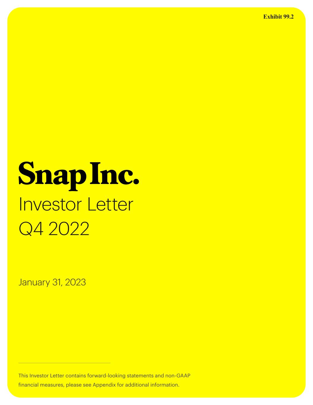 EX-99.2 3 snapincq42022investorlet.htm EX-99.2 snapincq42022investorlet