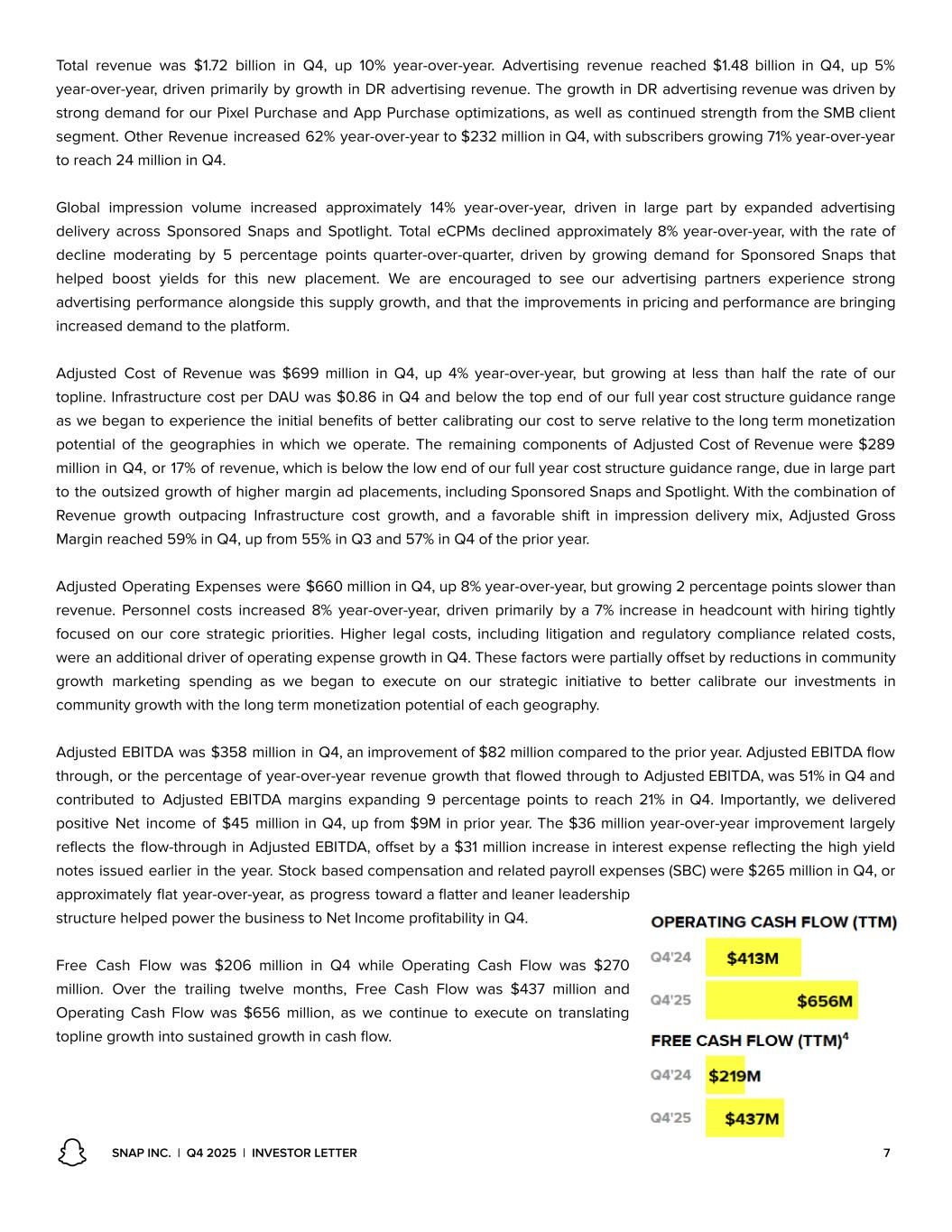 ​SNAP INC. | Q4 2025 | INVESTOR LETTER​ ​10​