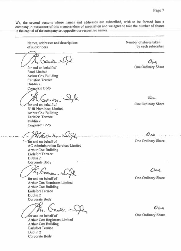 NOTE:It is hereby declared that the word “company” in this clause, except where used in reference to this Company shall be deemed to include any partnership, body corporate or other body of persons whether incorporated or not incorporated and whether domiciled in Ireland or elsewhere and the intention is that the objects specified in each paragraph of this clause shall except where otherwise expressed in such paragraph be in no way limited or restricted by reference to or inference from the terms of any other paragraph.