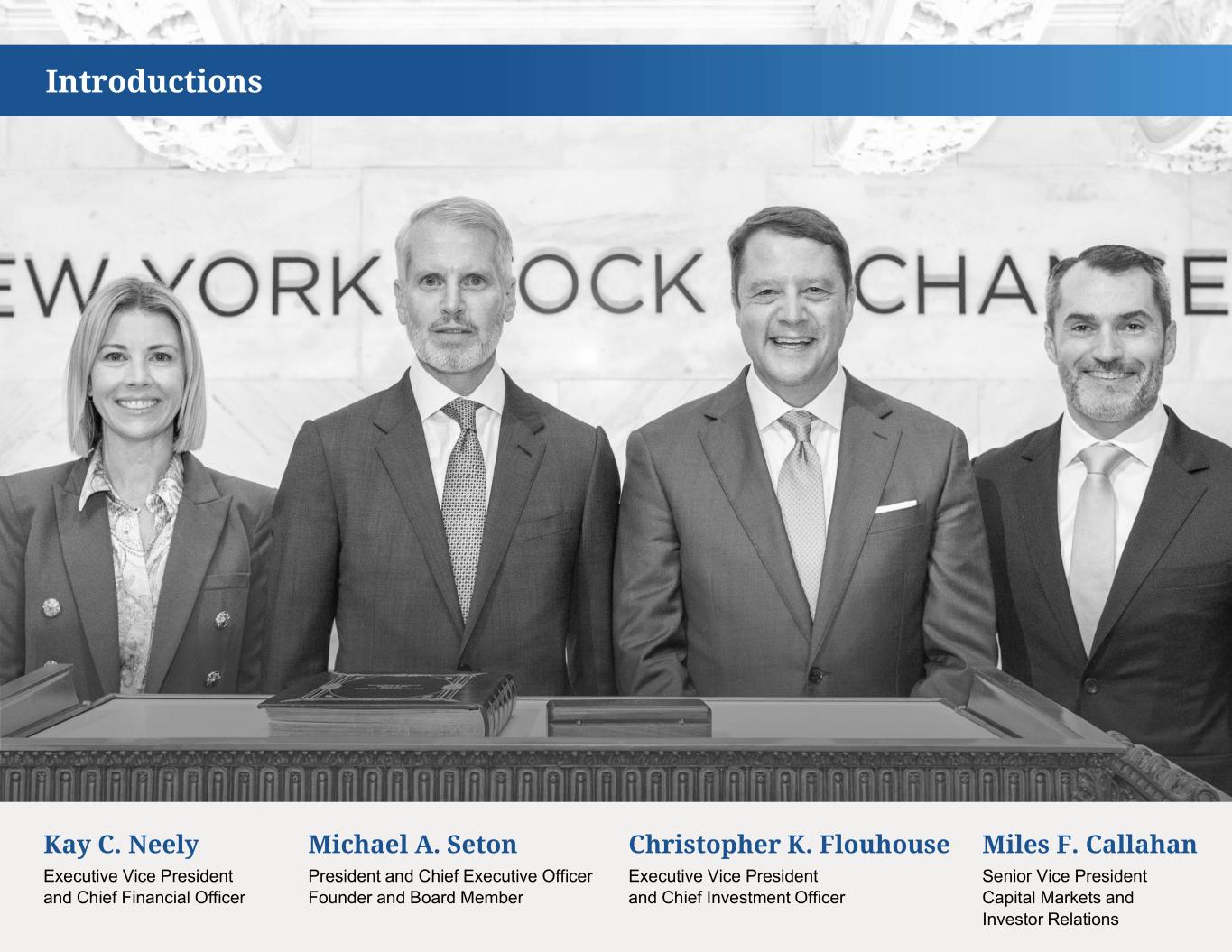 3 3 Michael A. Seton President and Chief Executive Officer Founder and Board Member Kay C. Neely Executive Vice President and Chief Financial Officer Miles F. Callahan Senior Vice President Capital Markets and Investor Relations Introductions Christopher K. Flouhouse Executive Vice President and Chief Investment Officer