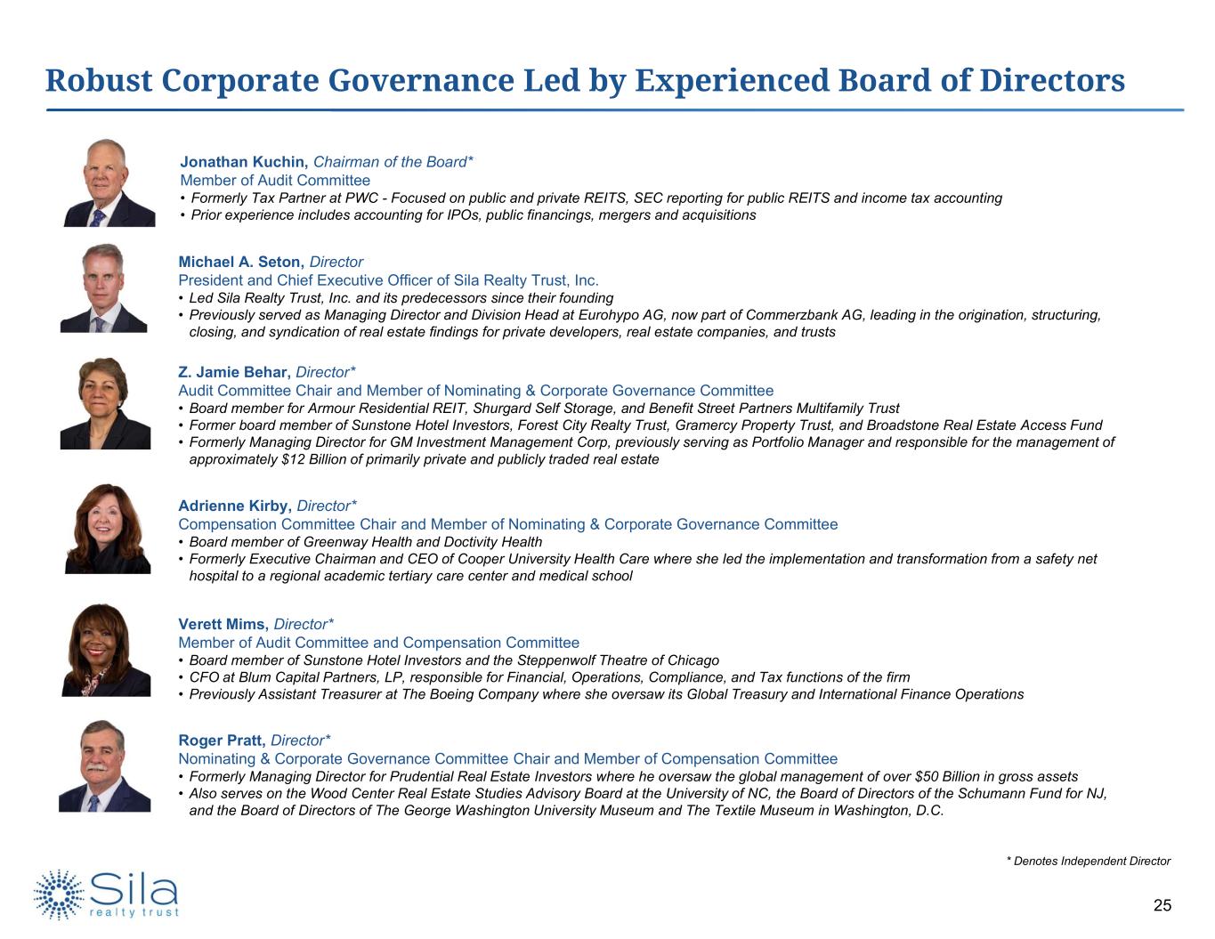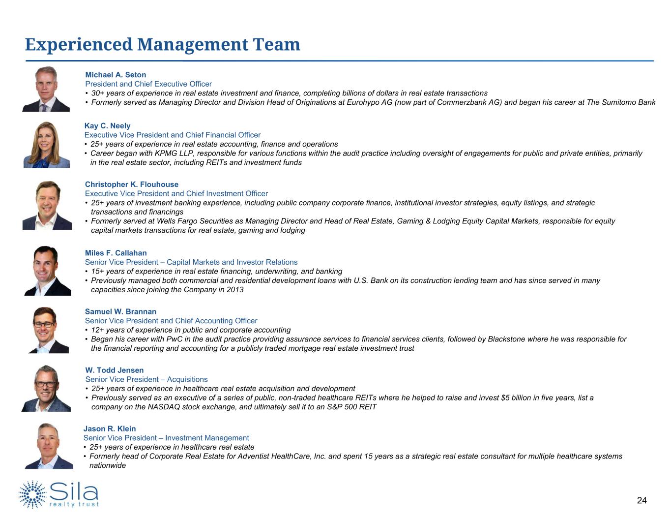 Contact Information Corporate Address www.SilaRealtyTrust.com 1001 Water Street Suite 800 Tampa, FL 33602 Miles Callahan Senior Vice President, Capital Markets & Investor Relations IR@silarealtytrust.com
