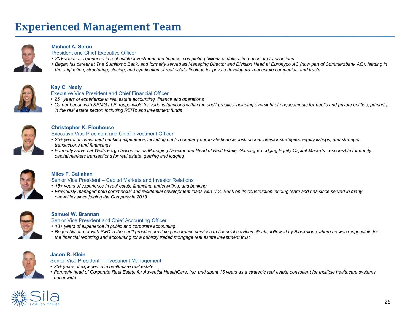 Contact Information Corporate Address www.SilaRealtyTrust.com 1001 Water Street Suite 800 Tampa, FL 33602 Miles Callahan Senior Vice President, Capital Markets & Investor Relations IR@silarealtytrust.com