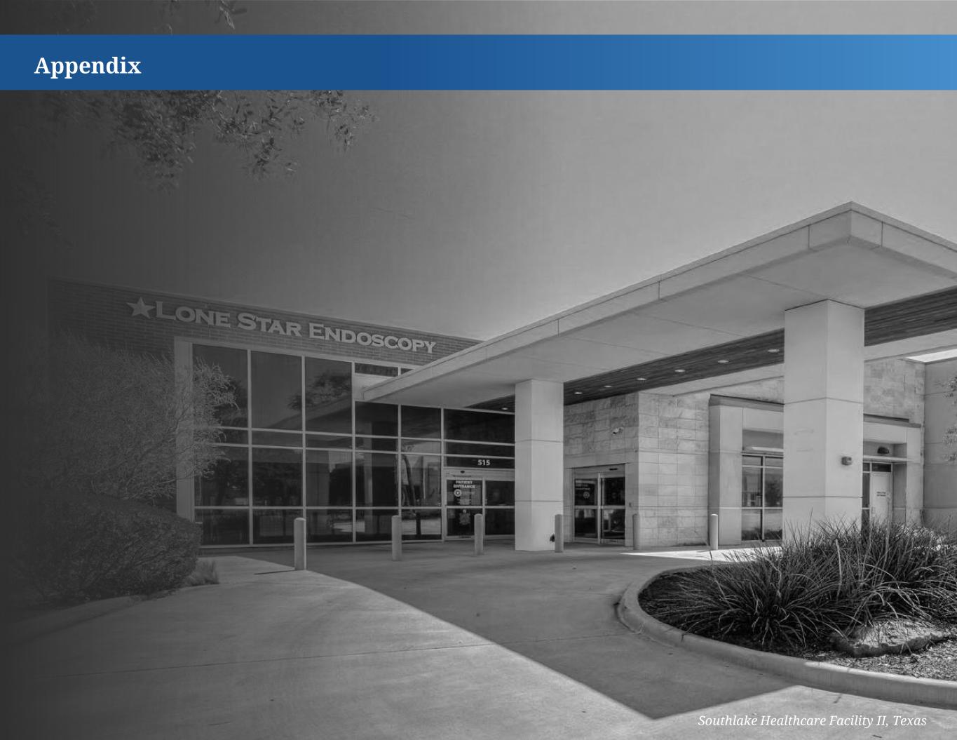 18 Strategy in Action: Southlake Healthcare Facilities High Quality Facilities Two property portfolio comprised of a traditional MOB and an outpatient ambulatory surgery center (“ASC”), both highly utilized and well trafficked facilities. The two buildings are operationally integrated through an overlapping physician group and patient population, aligning patient care with efficiencies with a focus on patient-centric outcomes. Strategic Locations Both facilities are located in Southlake, Texas, an affluent suburb of the Dallas- Fort Worth-Arlington MSA. Each facility benefits from strong operational synergies due to their complimentary uses and close proximity to each other. Together, the MOB and ASC deliver a comprehensive suite of GI services. Physicians who practice at the MOB routinely perform surgeries at the adjacent ASC, creating a referral and care pathway between the two buildings. Reliable Tenants The traditional MOB is leased to GI Alliance (now owned by Cardinal Health), the largest gastroenterology group in the U.S. with over 1,000 physicians across the country. Cardinal Health (Moody’s: Baa2) is a publicly traded, global healthcare services and products company that serves nearly 90% of all U.S. hospitals. The ASC is leased to Lonestar Endoscopy, a joint venture between Baylor Scott & White Health (Moody’s: Aa2), the largest not-for-profit healthcare system in Texas, and USPI, a subsidiary of Tenet Healthcare Corporation (Moody’s: Ba3), a leading owner and operator of ASCs and surgical hospitals, operating 518 facilities with 11,000+ physicians across 37 states. Transaction Details Location Southlake, Texas Closing Date August 2025 Property Types Medical Outpatient Buildings Size 27,793 total SF Years Built/Renovated 2015 & 2017 Tenants GI Alliance (Cardinal Health) Lonestar Endoscopy (Baylor Scott & White Health and USPI (Tenet Healthcare)) Source On Market $16.2 Million Purchase Price