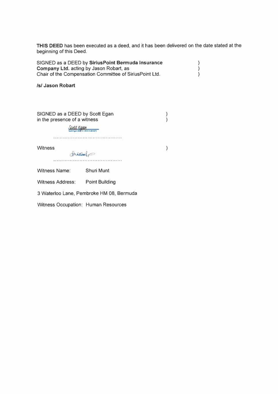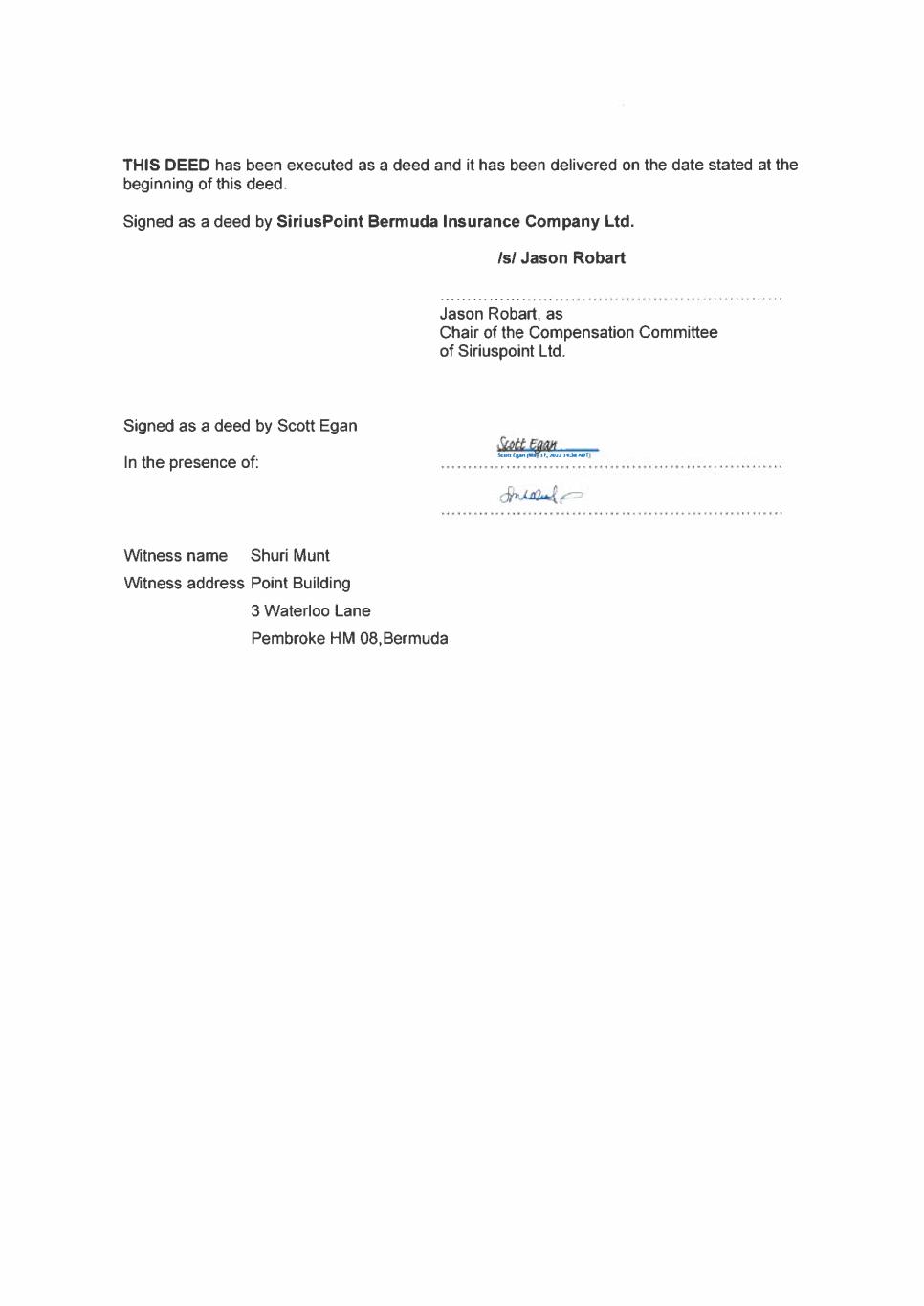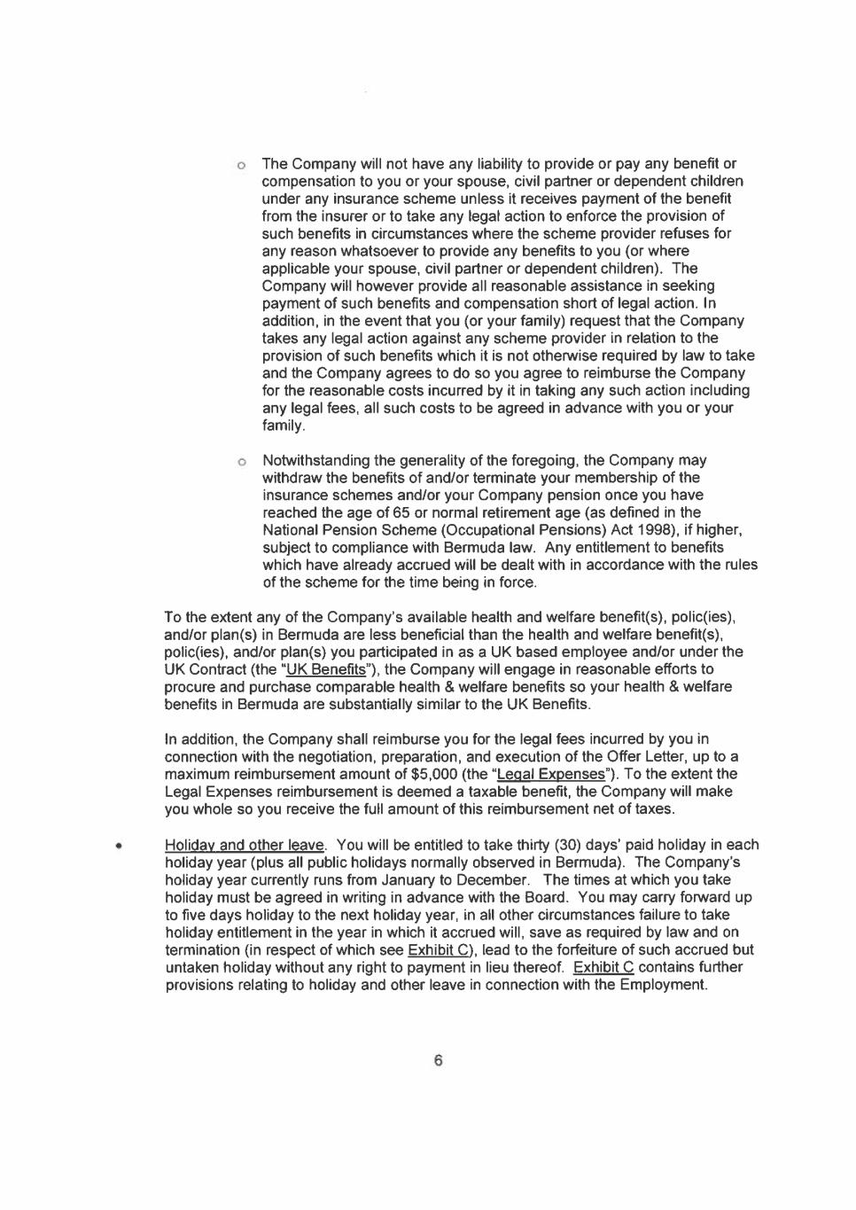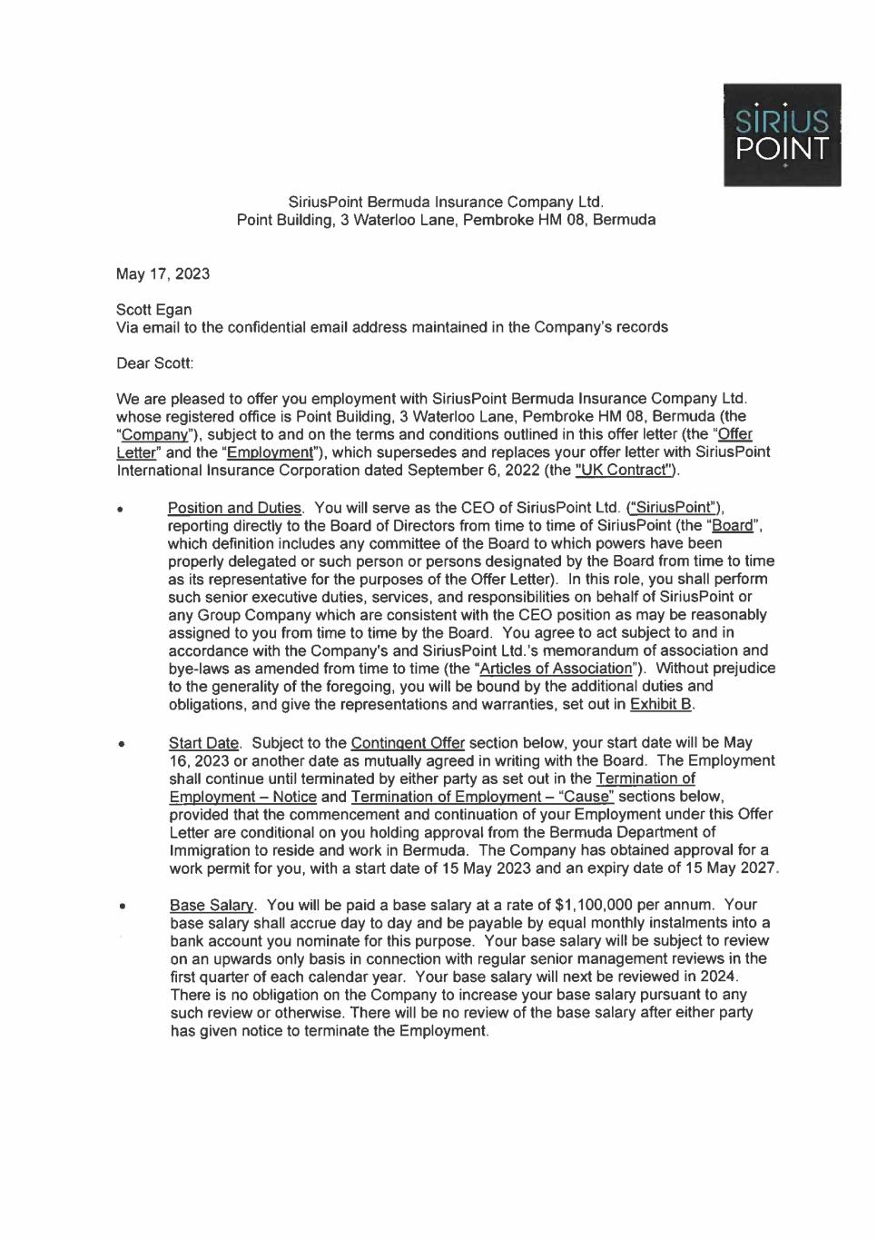 EX-10.1 2 scottegan-bermudaemploym.htm EX-10.1 SCOTT EGAN BERMUDA EMPLOYMENT CONTRACT scottegan-bermudaemploym