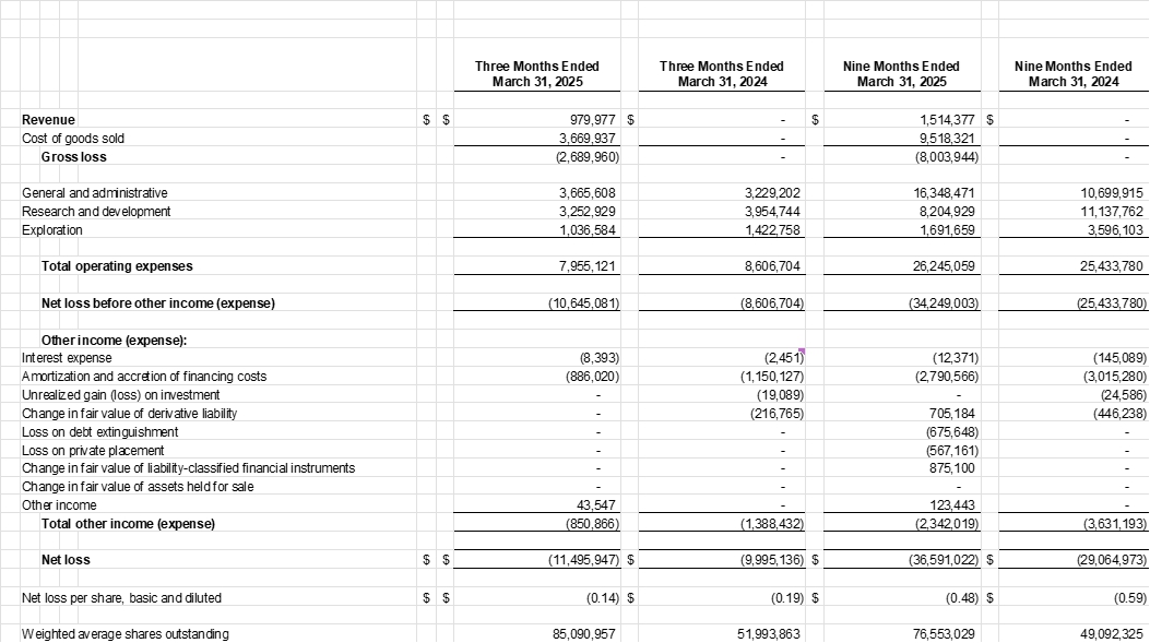Primary Lithium Manufacturing Highlights from Third Fiscal Quarter 2025: