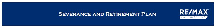 The purpose of the RE/MAX, LLC Severance and Retirement Plan (the “Plan”) is to provide payments and/or other benefits to employees of RE/MAX, LLC and its subsidiaries (the “Company”) in the United States whose employment is involuntarily terminated or who retire. The Plan is effective May 24, 2023 (the “Effective Date”) and supersedes all severance policies and/or plans previously maintained or offered by the Company and its predecessors for the benefit of their employees.