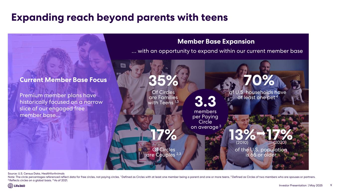 Investor Presentation | May 2025 Significant opportunity to continue to expand TAM Source: GSMA Mobile Economy Report, Pew Research Center, 2020 U.S. Census, International Monetary Fund (IMF), Public Company Filings, and Company Data 1 Smartphone-Equipped Population of Asia Pacific excluding China, Eurasia excluding Russia, Middle East and North Africa, United States, and Canada (Total Population × Smartphone Adoption Rate), divided by People Per Paying Circle to derive Total Paying Circles, multiplied by Q1’24 Average Revenue Per Paying Circle. 2 Intellectual Market Insights Research – AirTag Market Overview. 3 Grandview Research – Pet Wearables Market 4 2023 Average Advertising Revenue Per User of Meta, Snap, Uber, Spotify, Reddit, and Duolingo, multiplied by Smartphone-Equipped Population across the U.S. (Total Population × Smartphone Adoption Rate). 8 2021 – 2022 ~$80bn Item Tracking2 Pet Tracking3 Subscription Services $2.7bn $2.1bn $75bn Today ~$83bn Advertising4 Item Tracking Pet Tracking Subscription Services $2.7bn $2.1bn $75bn $3.1bn Subscription Services1 ~$75bn ~$75bn Acquisition of + Future E x p a n sio n O p p o rtu n itie s Family Financial Services Elderly Monitoring Auto Insurance Advertising Item Tracking Pet Tracking Subscription Services