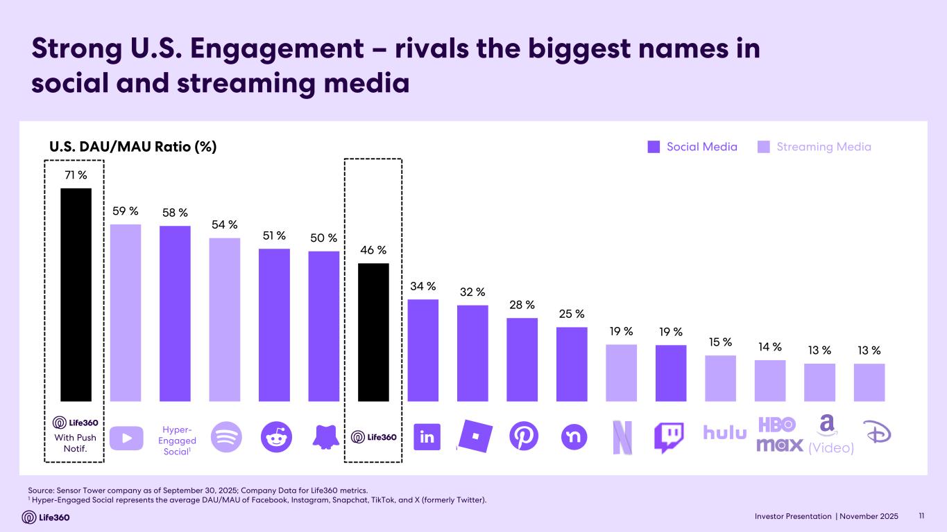 Investor Presentation | November 2025 10 U.S. Social Networking App Rankings by DAU1U.S. Lifestyle App Rankings by DAU1 Source: Sensor Tower Note: DAUs (Daily Active Users) defined as devices having 1 or more foreground sessions within an app in a day. 1 As of September 2025. One of the highest DAUs across all apps in the U.S. Triple Tier Social Networking App Rankings by DAU1 6 7 8 Triple Tier Lifestyle App Rankings by DAU1 2 7 5