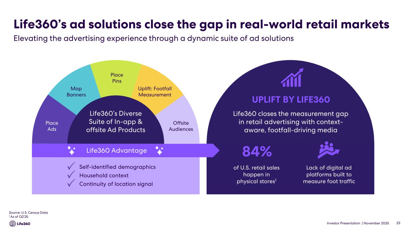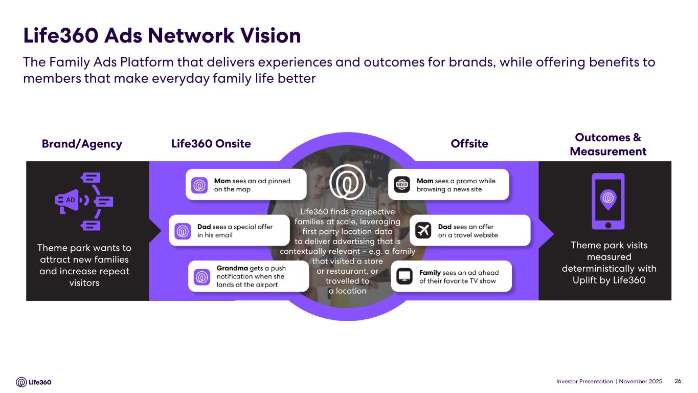 Investor Presentation | November 2025 UPLIFT BY LIFE360 Offsite Audiences Uplift: Footfall Measurement Map Banners Place Ads Place Pins Self-identified demographics Household context Continuity of location signal Life360 closes the measurement gap in retail advertising with context- aware, footfall-driving media Life360’s ad solutions close the gap in real-world retail markets Life360 Advantage 84% Lack of digital ad platforms built to measure foot traffic of U.S. retail sales happen in physical stores1 Source: U.S. Census Data 1 As of Q2’25 23 Elevating the advertising experience through a dynamic suite of ad solutions