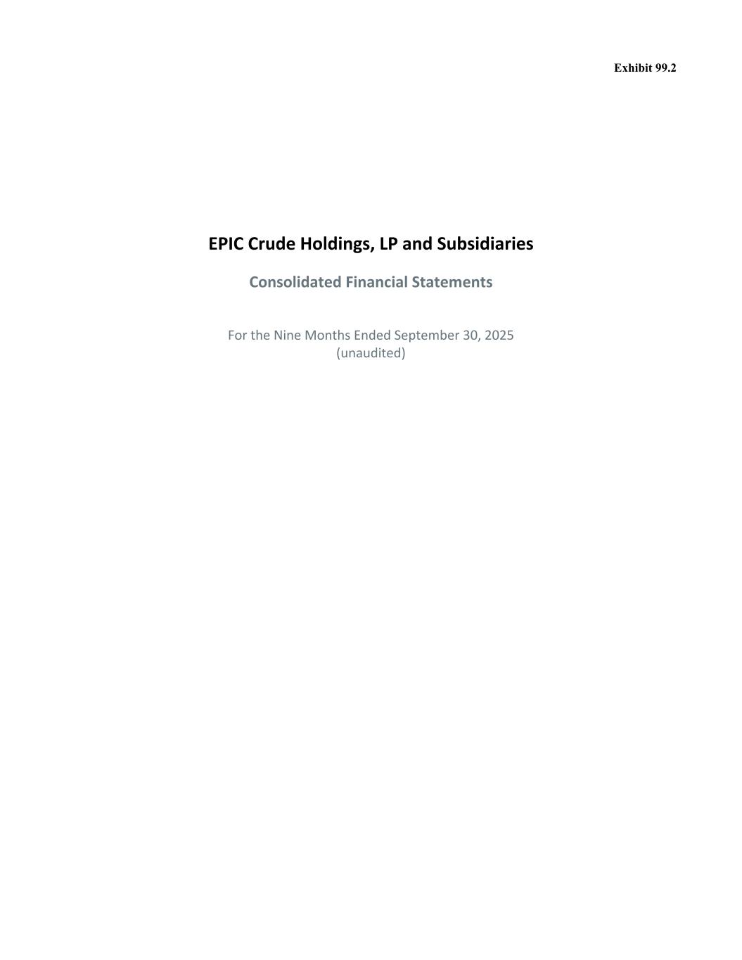 Exhibit 99.2 EPIC Crude Holdings, LP and Subsidiaries Consolidated Financial Statements For the Nine Months Ended September 30, 2025 (unaudited)