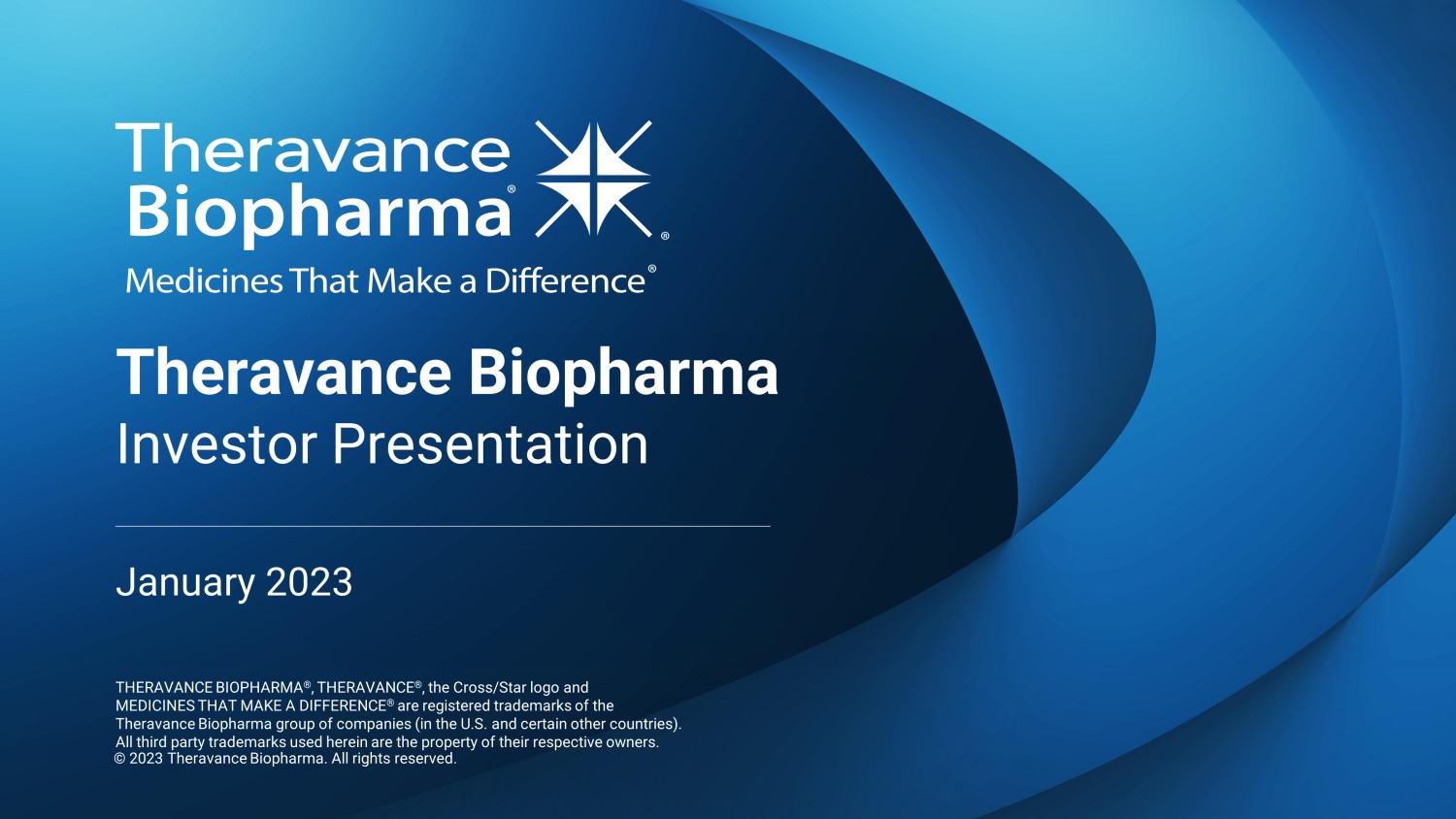 THERAVANCE BIOPHARMA ® , THERAVANCE ® , the Cross/Star logo and MEDICINES THAT MAKE A DIFFERENCE ® are registered trademarks of the Theravance Biopharma group of companies (in the U.S. and certain other countries). All third party trademarks used herein are the property of their respective owners. Theravance Biopharma Investor Presentation January 2023 © 2023 Theravance Biopharma. All rights reserved.