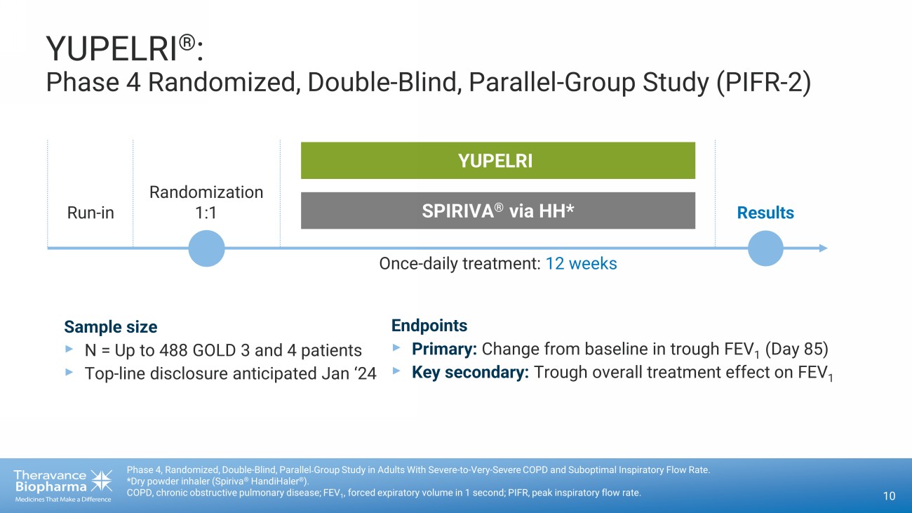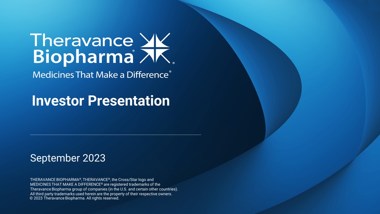THERAVANCE BIOPHARMA ® , THERAVANCE ® , the Cross/Star logo and MEDICINES THAT MAKE A DIFFERENCE ® are registered trademarks of the Theravance Biopharma group of companies (in the U.S. and certain other countries). All third party trademarks used herein are the property of their respective owners. Investor Presentation September 2023 © 2023 Theravance Biopharma. All rights reserved.