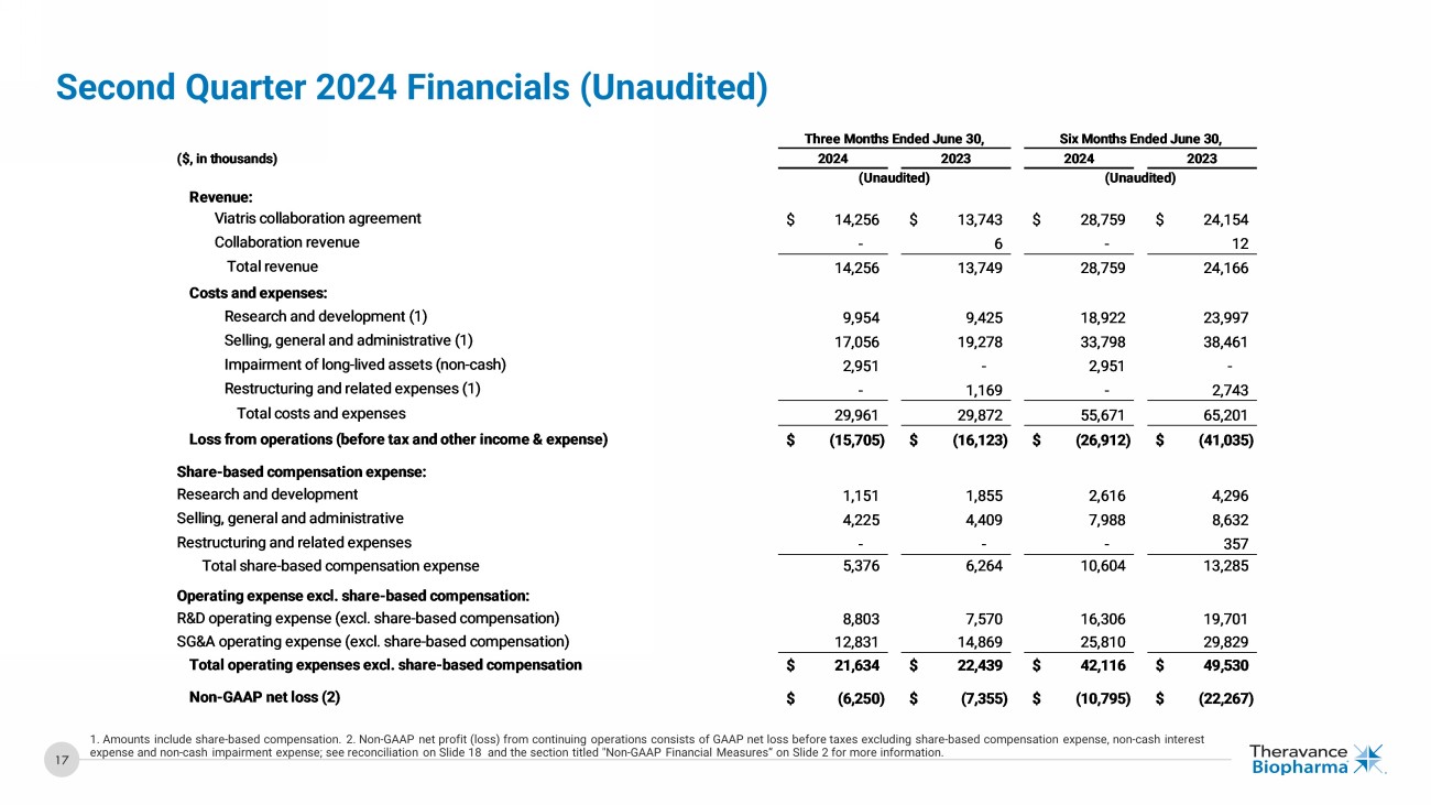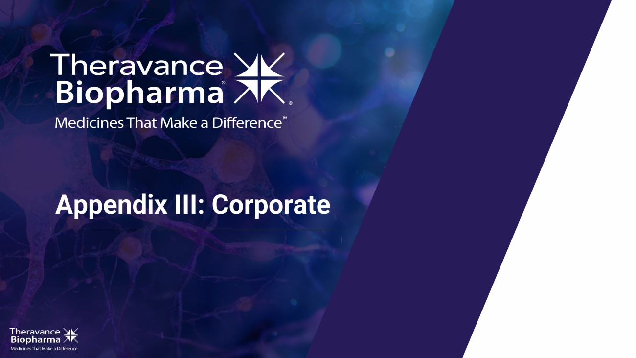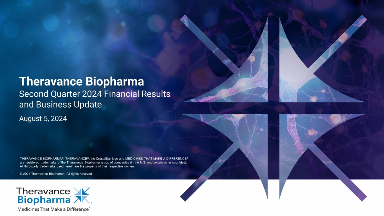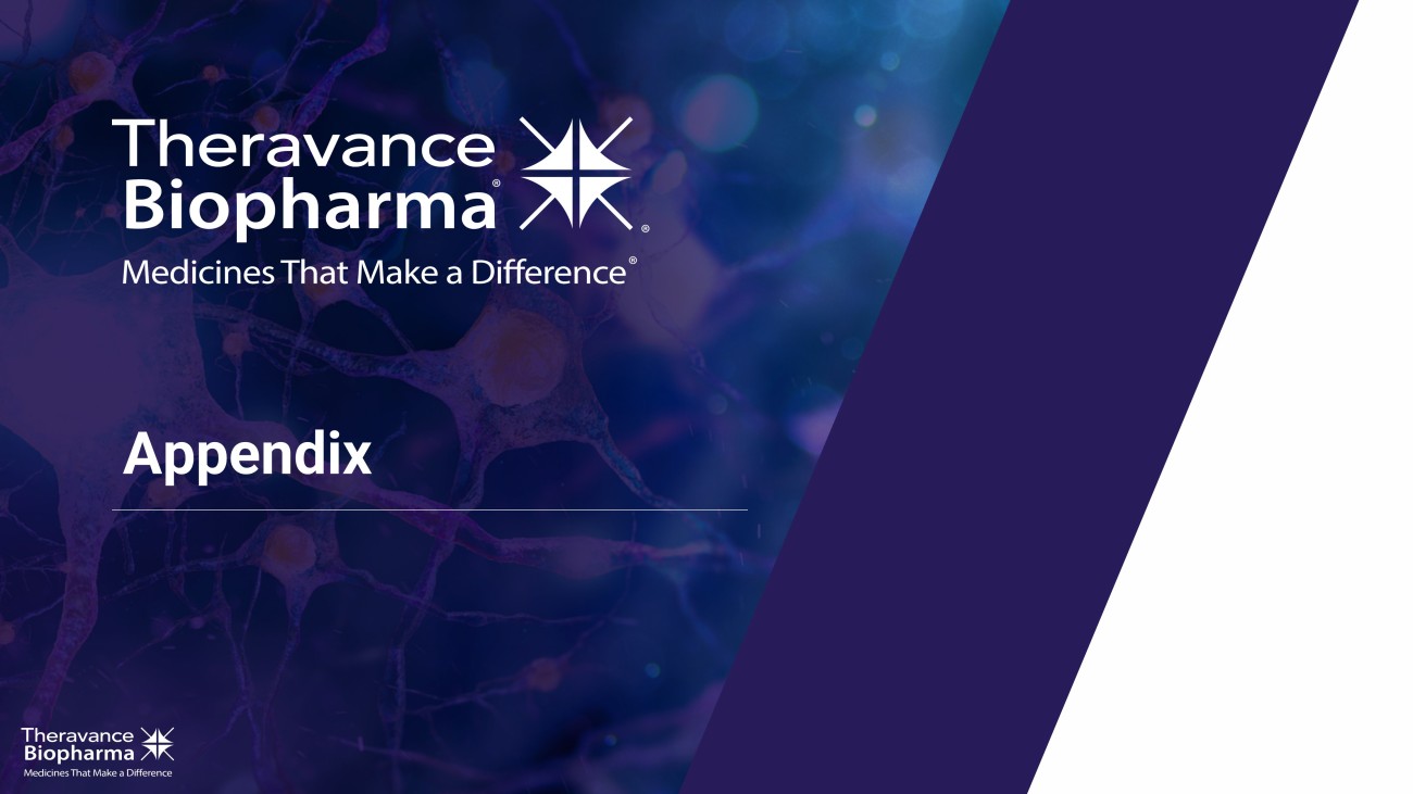 THERAVANCE BIOPHARMA ® , THERAVANCE ® , the Cross/Star logo and MEDICINES THAT MAKE A DIFFERENCE ® are registered trademarks of the Theravance Biopharma group of companies (in the U.S. and certain other countries). All third - party trademarks used herein are the property of their respective owners. © 2024 Theravance Biopharma. All rights reserved. Theravance Biopharma Second Quarter 2024 Financial Results and Business Update August 5, 2024