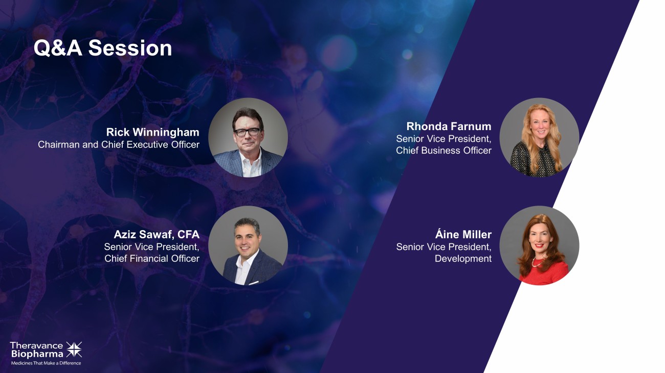 Rick Winningham Chairman and Chief Executive Officer Aziz Sawaf, CFA Senior Vice President, Chief Financial Officer Rhonda Farnum Senior Vice President, Chief Business Officer Áine Miller Senior Vice President, Development Q&A Session