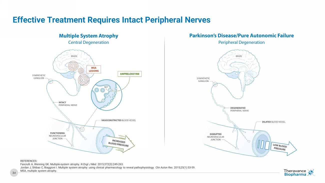34 Effective Treatment Requires Intact Peripheral Nerves REFERENCES: Fanciulli A, Wenning GK. Multiple - system atrophy. N Engl J Med. 2015;372(3):249 - 263. Jordan J, Shibao C, Biaggioni I. Multiple system atrophy: using clinical pharmacology to reveal pathophysiology. Clin Auton Res . 2015;25(1):53 - 59. MSA, multiple system atrophy. 34