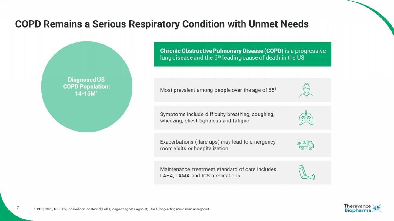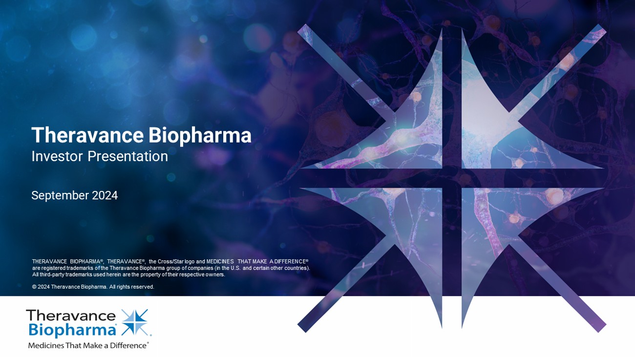 THERAVANCE BIOPHARMA ® , THERAVANCE ® , the Cross/Star logo and MEDICINES THAT MAKE A DIFFERENCE ® are registered trademarks of the Theravance Biopharma group of companies (in the U.S. and certain other countries). All third - party trademarks used herein are the property of their respective owners. © 2024 Theravance Biopharma. All rights reserved. Theravance Biopharma Investor Presentation September 2024