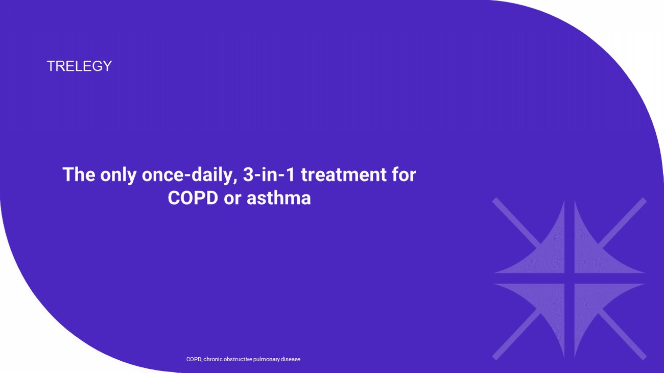 The only once - daily, 3 - in - 1 treatment for COPD or asthma TRELEGY COPD, chronic obstructive pulmonary disease