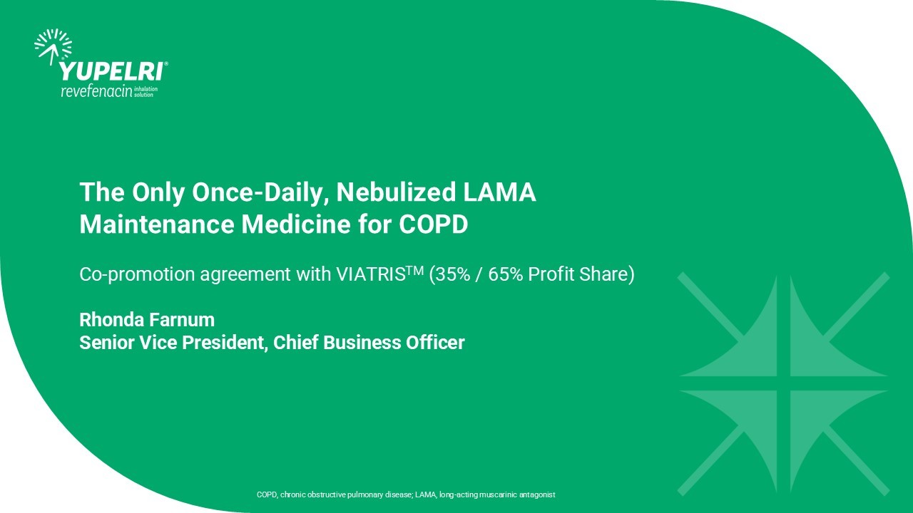 The Only Once - Daily, Nebulized LAMA Maintenance Medicine for COPD Co - promotion agreement with VIATRIS TM (35% / 65% Profit Share) Rhonda Farnum Senior Vice President, Chief Business Officer COPD, chronic obstructive pulmonary disease; LAMA, long - acting muscarinic antagonist