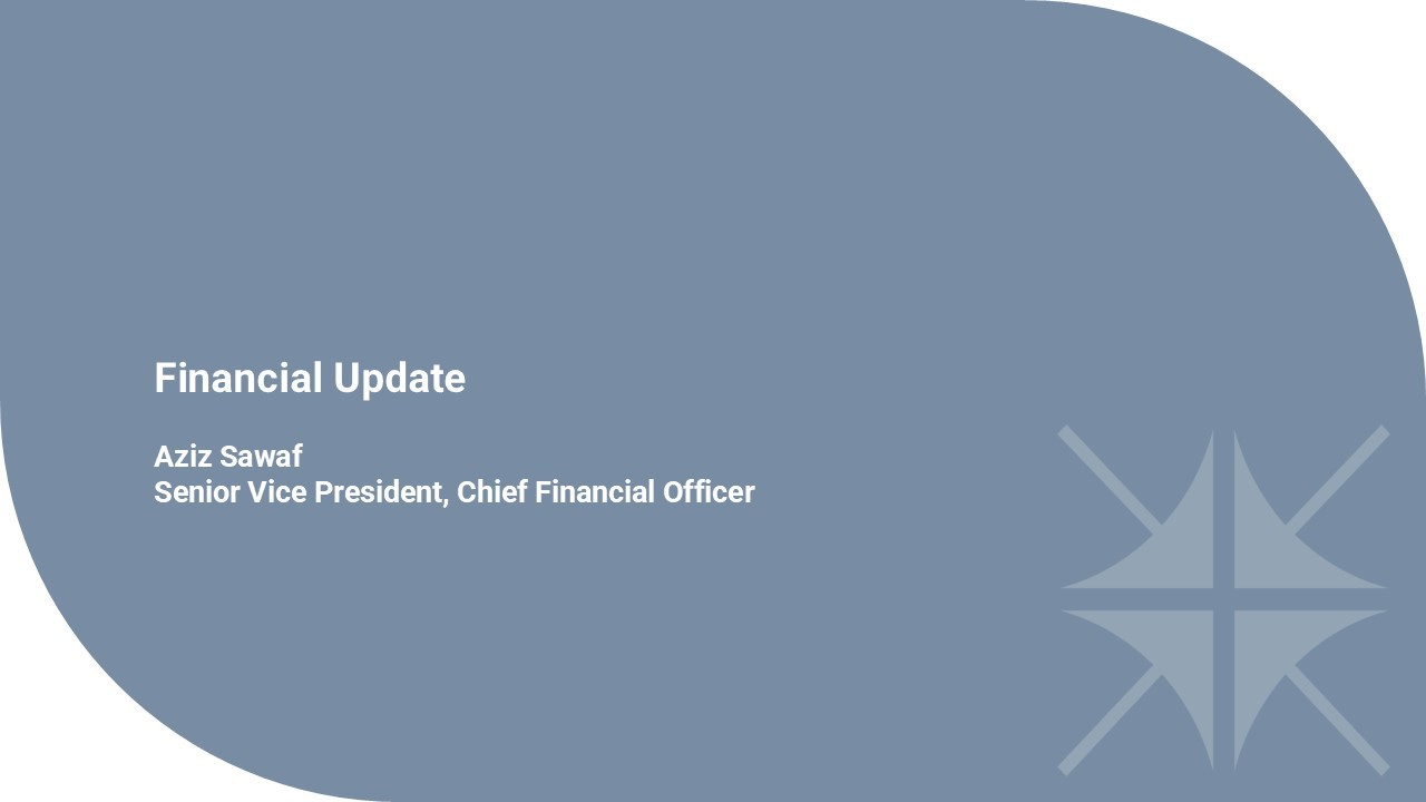 Financial Update Aziz Sawaf Senior Vice President, Chief Financial Officer