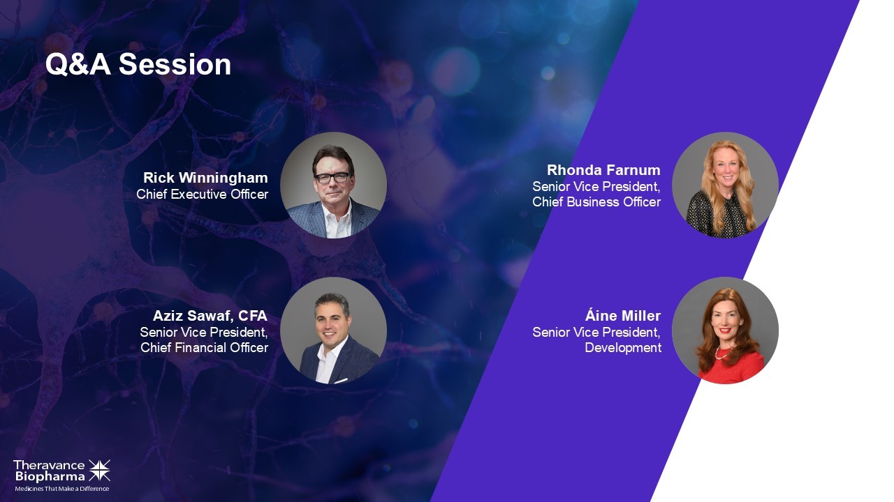 Rick Winningham Chief Executive Officer Aziz Sawaf, CFA Senior Vice President, Chief Financial Officer Rhonda Farnum Senior Vice President, Chief Business Officer Áine Miller Senior Vice President, Development Q&A Session