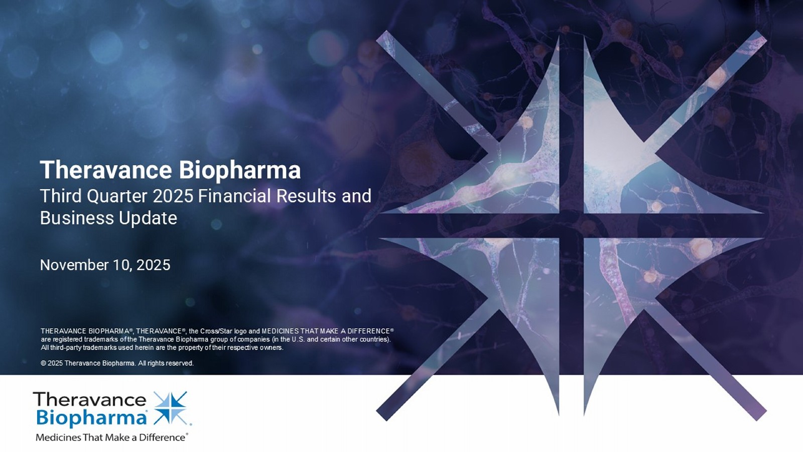THERAVANCE BIOPHARMA ® , THERAVANCE ® , the Cross/Star logo and MEDICINES THAT MAKE A DIFFERENCE ® are registered trademarks of the Theravance Biopharma group of companies (in the U.S. and certain other countries). All third - party trademarks used herein are the property of their respective owners. © 2025 Theravance Biopharma. All rights reserved. Theravance Biopharma Third Quarter 2025 Financial Results and Business Update November 10 , 2025