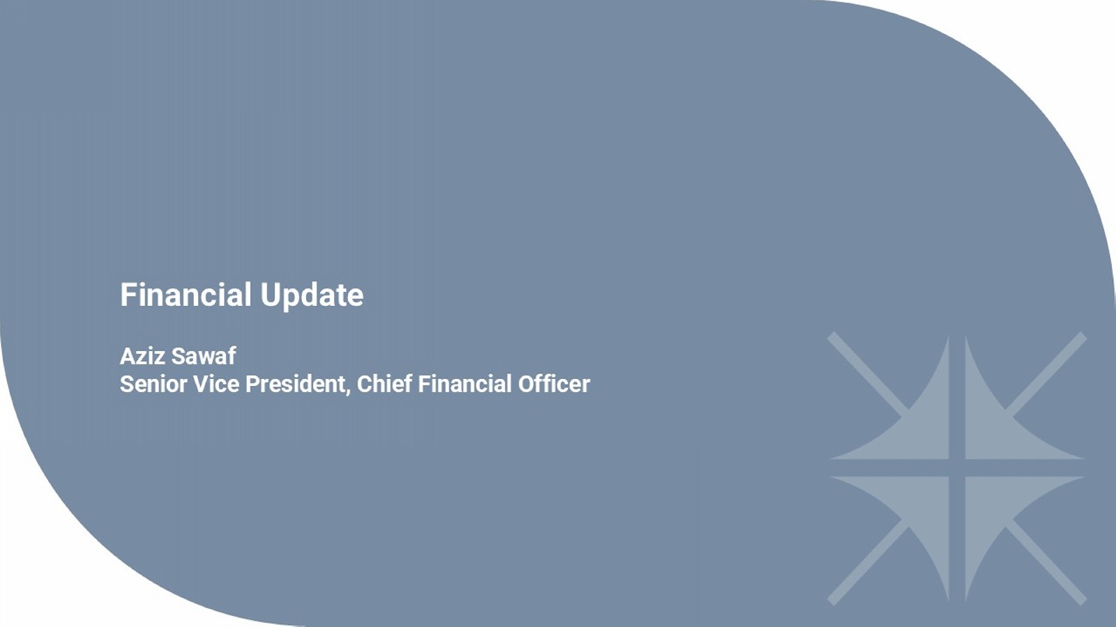 Financial Update Aziz Sawaf Senior Vice President, Chief Financial Officer