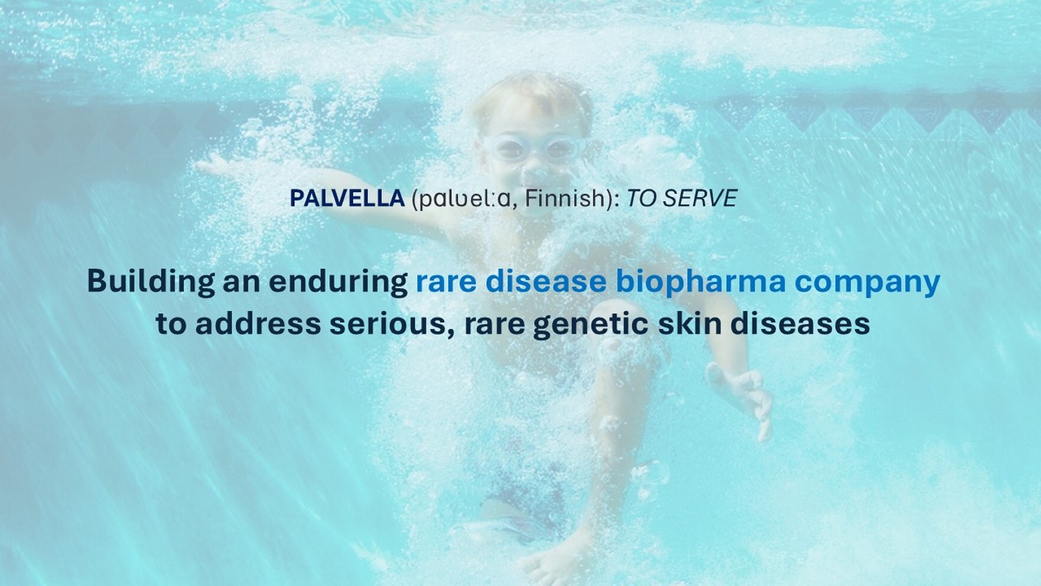 3 PALVELLA ( p ɑ lʋel ːɑ , Finnish) : TO SERVE Building an enduring rare disease biopharma company to address serious, rare genetic skin diseases
