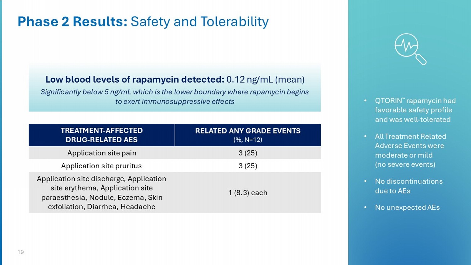 18 Week 12 Baseline Phase 2 Results: Visible Improvement Wrist Wrist Patient CGI - C: Very Much Improved (+3). QTORIN 3.9% rapamycin anhydrous gel is for investigational use only and has not been approved or cleared by the FDA or by any other regulatory agency. The safety or efficacy has not been established for any use.