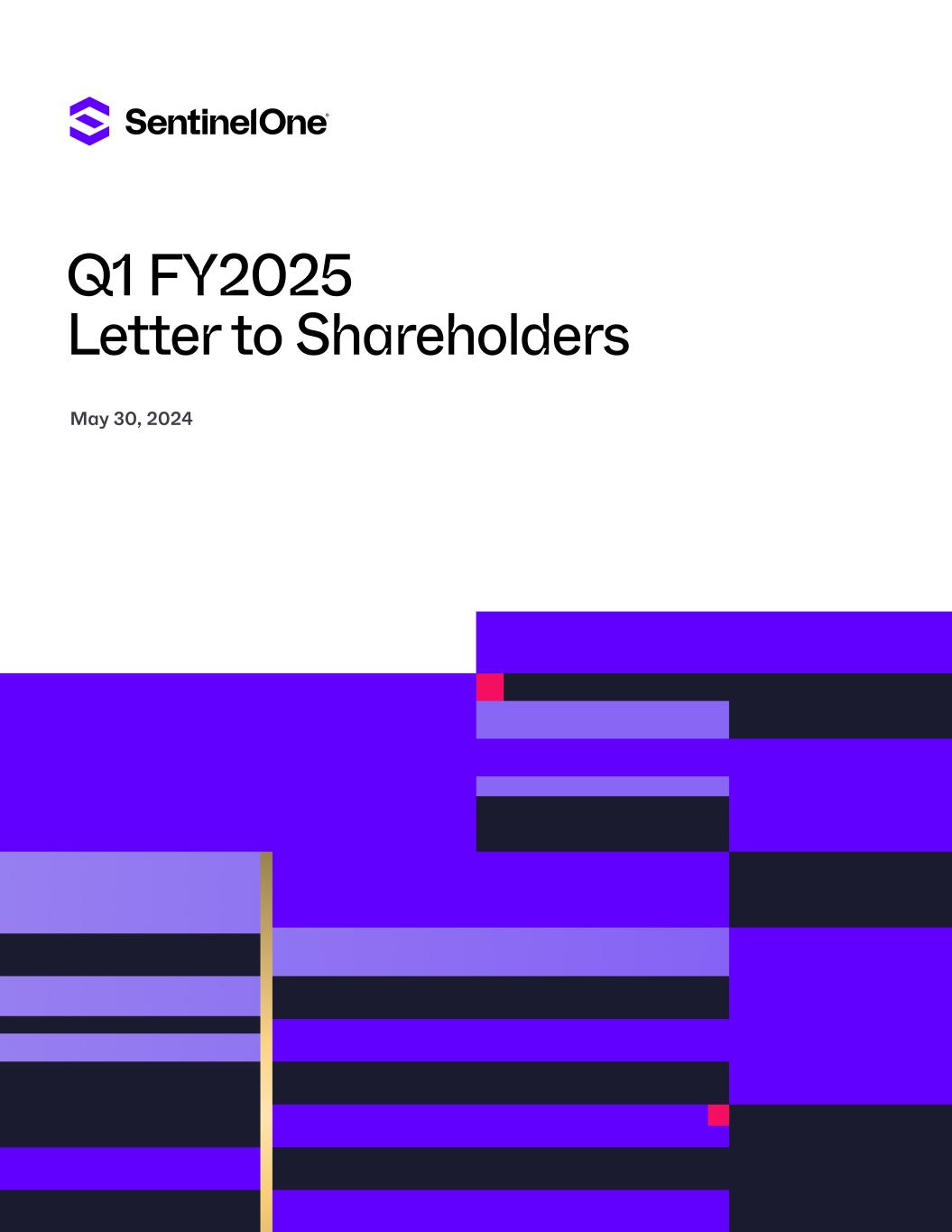 Q1 FY2025 Letter to SharehoLderSSENTINELONE 15 Forward-Looking Statements This letter and the live webcast, which will be held at 2:00 p.m. Pacific Time / 5:00 p.m. Eastern Time on May 30, 2024, contains forward-looking statements within the meaning of Section 27A of the Securities Act of 1933, as amended, and Section 21E of the Securities Exchange Act of 1934, as amended, which statements involve risks and uncertainties, including but not limited to statements regarding our future growth, execu- tion, competitive position, and future financial and operating performance, including our financial outlook for the second quarter of fiscal year 2025 and our full fiscal year 2025, including non-GAAP gross margin and non-GAAP operating margin; timing for profitability (on a non-GAAP basis); and general market trends. The words “believe,” “may,” “will,” “potentially,” “estimate,” “continue,” “anticipate,” “intend,” “could,” “would,” “proj- ect,” “target,” “plan,” “expect,” or the negative of these terms and similar expressions are intended to identify forward-looking statements. However, not all forward-looking statements contain these identifying words. There are a significant number of factors that could cause our actual results to differ materially from state- ments made in this press release, including but not limited to: our limited operating history; our history of loss- es; intense competition in the market we compete in; fluctuations in our operating results; actual or perceived network or security incidents against us; our ability to successfully integrate any acquisitions and strategic investments; actual or perceived defects, errors or vulnerabilities in our platform; risks associated with man- aging our rapid growth; general global market, political, economic, and business conditions, including those related to declining global macroeconomic conditions, interest rate volatility, supply chain disruptions and inflation, actual or perceive instability in the banking sector, potential uncertainty with respect to the federal debt ceiling and budget and potential government shutdowns related thereto, and geopolitical uncertainty, including the effects of the conflicts in the Middle East, Ukraine and tensions between China and Taiwan; our ability to attract new and retain existing customers, or renew and expand our relationships with them; the ability of our platform to effectively interoperate within our customers' IT infrastructure; disruptions or other business interruptions that affect the availability of our platform including cybersecurity incidents; the failure to timely develop and achieve market acceptance of new products and subscriptions as well as existing products, subscriptions and support offerings; rapidly evolving technological developments in the market for security products and subscription and support offerings; length of sales cycles; and risks of securities class action litigation. Additional risks and uncertainties that could affect our financial results are included under the captions “Risk Factors” and “Management’s Discussion and Analysis of Financial Condition and Results of Operations” set forth in our filings and reports with the Securities and Exchange Commission (“SEC”), including our most re- cently filed Annual Report on Form 10-K dated March 27, 2024, subsequent Quarterly Reports on Form 10-Q and other filings and reports that we may file from time to time with the SEC, copies of which are available on our website at investors.sentinelone.com and on the SEC’s website at www.sec.gov. You should not rely on these forward-looking statements, as actual outcomes and results may differ materially from those contemplated by these forward-looking statements as a result of such risks and uncertainties. All forward-looking statements in this press release are based on information and estimates available to us as of the date hereof, and were based on current expectations, estimates, forecasts, and projections as well as the beliefs and assumptions of management. We do not assume any obligation to update the forward-looking statements provided to reflect events that occur or circumstances that exist after the date of this press re- lease or to reflect new information or the occurrence of unexpected events, except as required by law. We may not actually achieve the plans, intentions, or expectations disclosed in our forward-looking statements, and you should not place undue reliance on our forward-looking statements. Non-GAAP Financial Measures In addition to our results determined in accordance with GAAP, we believe the following non-GAAP measures are useful in evaluating our operating performance. We use the following non-GAAP financial information to evaluate our ongoing operations and for internal planning and forecasting purposes. We believe that non- GAAP financial information, when taken collectively, with the financial information presented in accordance