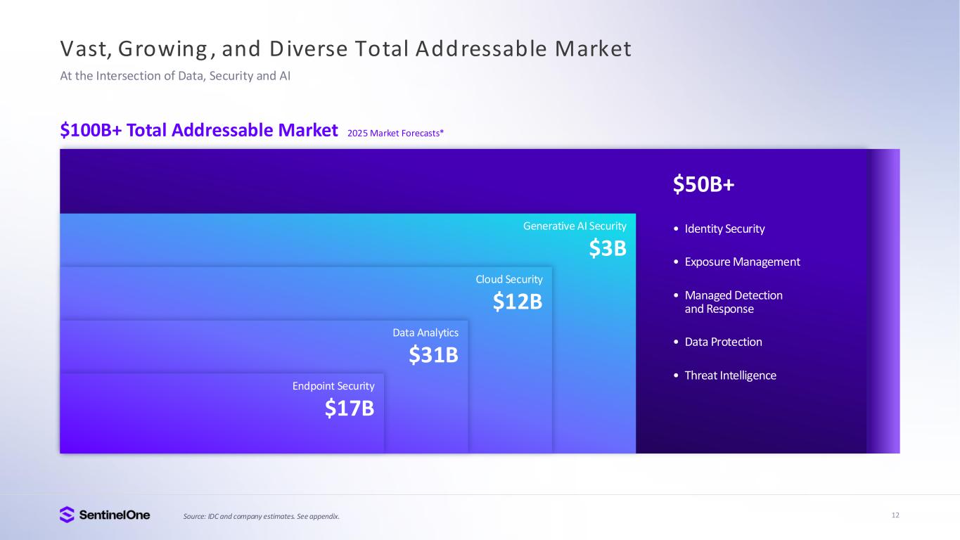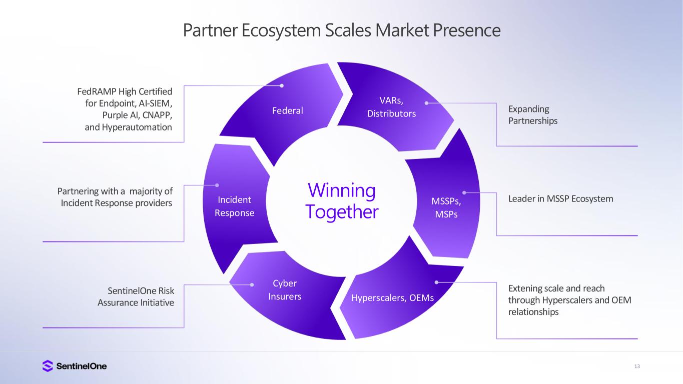 12 Vast, Growing , and D iverse Total Addressable Market At the Intersection of Data, Security and AI $100B+ Total Addressable Market 2025 Market Forecasts* Cloud Security $12B Data Analytics $31B Endpoint Security $17B Generative AI Security $3B $50B+ • Identity Security • Exposure Management • Managed Detection and Response • Data Protection • Threat Intelligence Source: IDC and company estimates. See appendix.