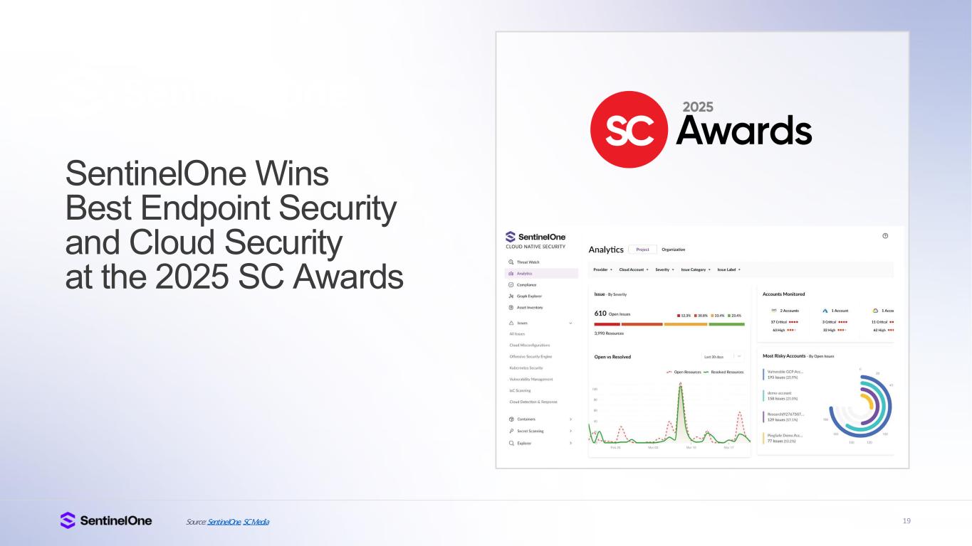 19Source: SentinelOne, SC Media SentinelOne Wins Best Endpoint Security and Cloud Security at the 2025 SC Awards