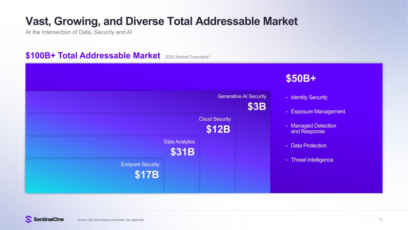 12 Vast, Growing, and Diverse Total Addressable Market At the Intersection of Data, Security and AI $100B+ Total Addressable Market 2025 Market Forecasts* Cloud Security $12B Data Analytics $31B Endpoint Security $17B Generative AI Security $3B $50B+ • Identity Security • Exposure Management • Managed Detection and Response • Data Protection • Threat Intelligence Source: IDC and company estimates. See appendix.