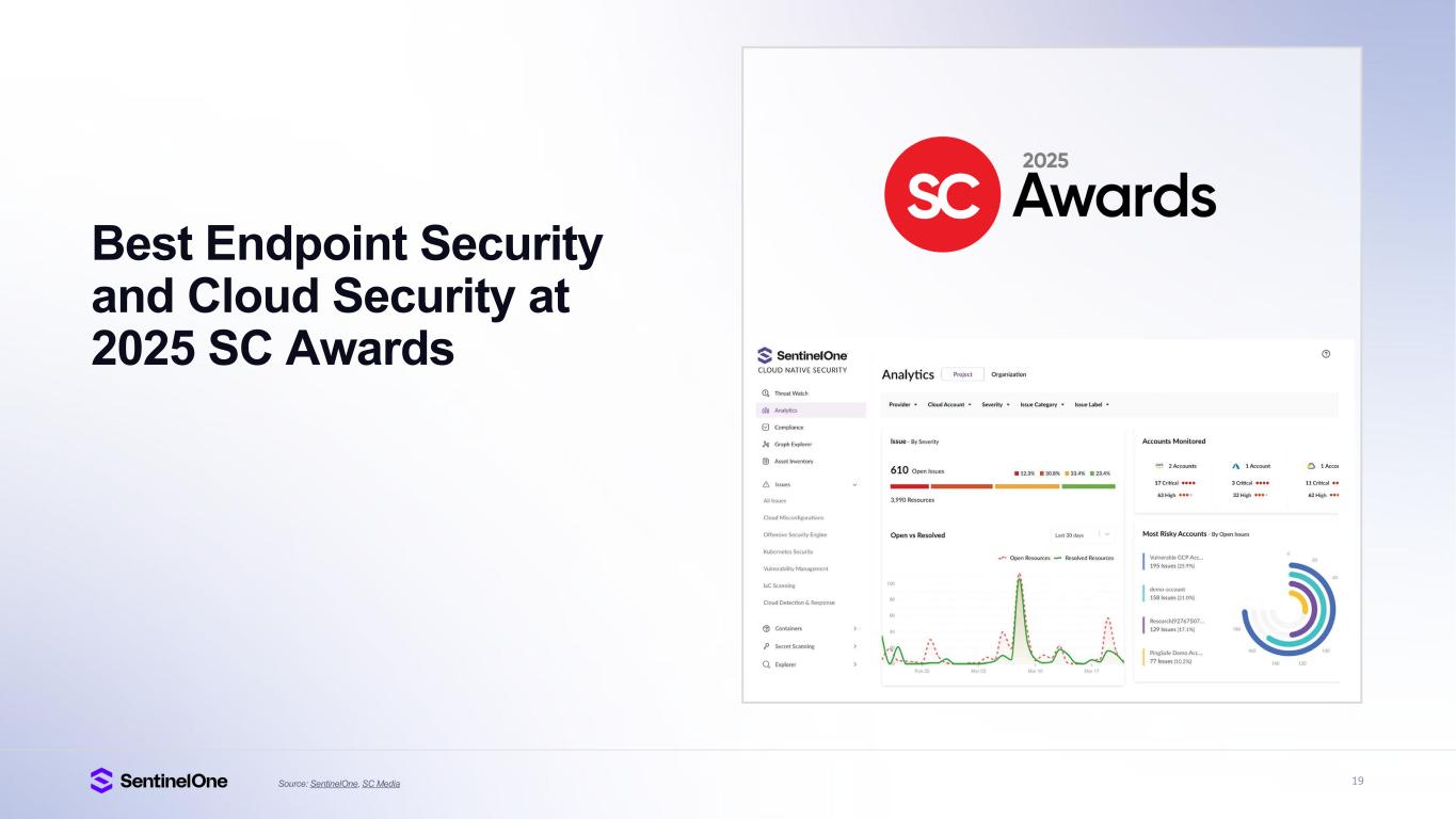 19Source: SentinelOne, SC Media Best Endpoint Security and Cloud Security at 2025 SC Awards