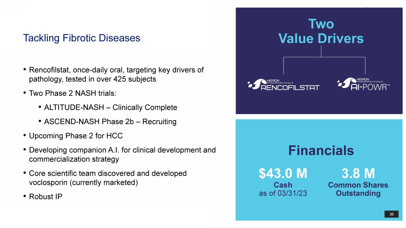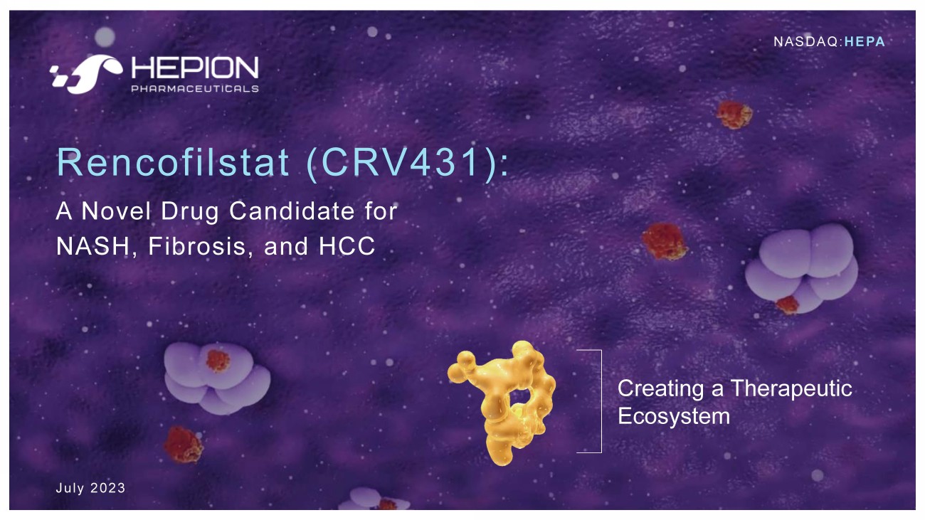 1 1 Rencofilstat (CRV431): A Novel Drug Candidate for NASH, Fibrosis, and HCC July 2023 Creating a Therapeutic Ecosystem NASDAQ: HEPA