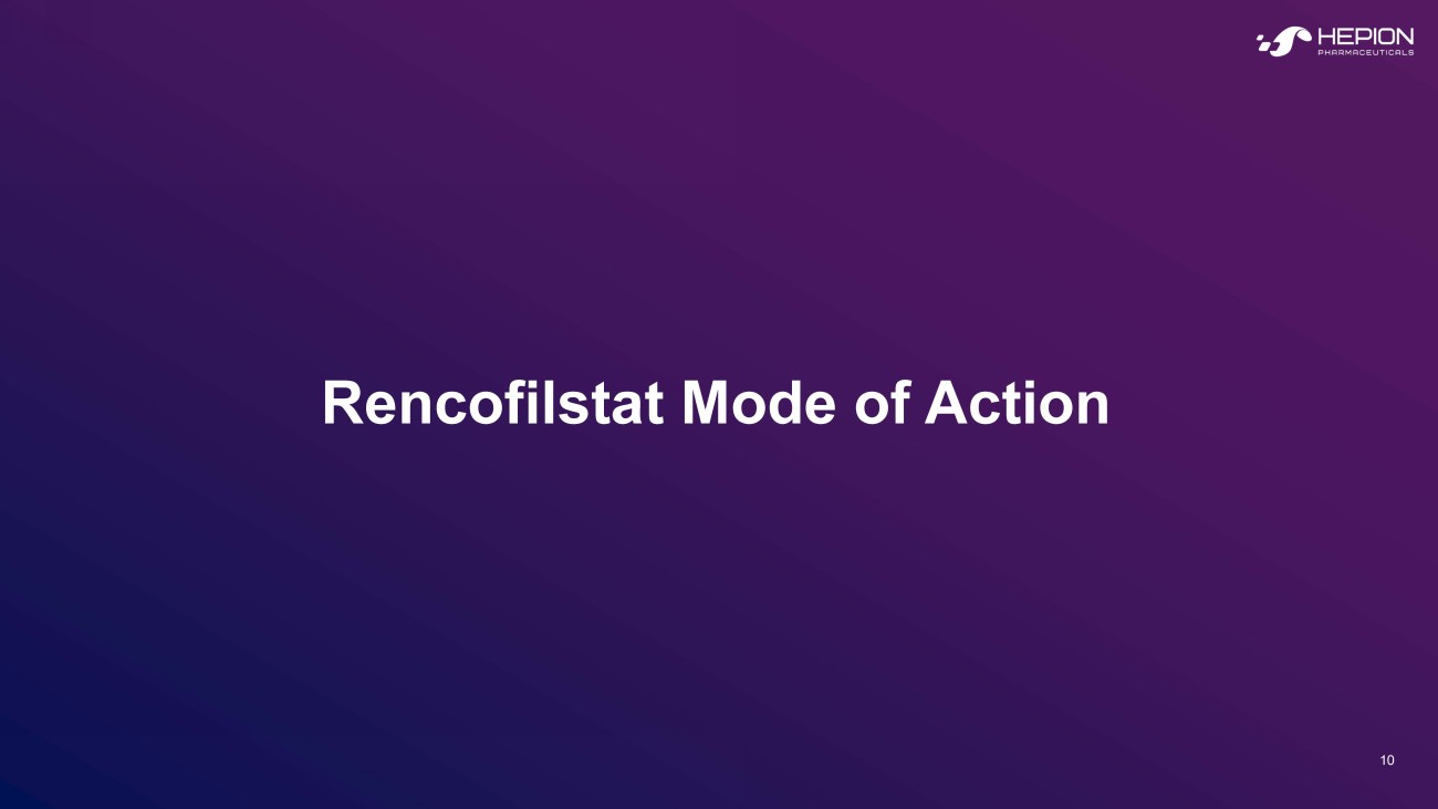 8 NASH DISEASE PROGRESSION normal liver cells fatty liver cells inflammation, cell injury, and activation of fibrotic cells production of fibrotic matrix WHY? • Generally poor response rates with drugs in development • Many pathologic mechanisms contribute to disease Most failed drugs and drugs in development are "metabolic" drugs e .g. target liver fat Rencofilstat inhibits collagen Multiple T herapeutic A gents T argeting M ultiple S tages of Disease L ikely Required NASH Therapeutic Strategies RENCOFILSTAT directly targets fibrosis and inflammation