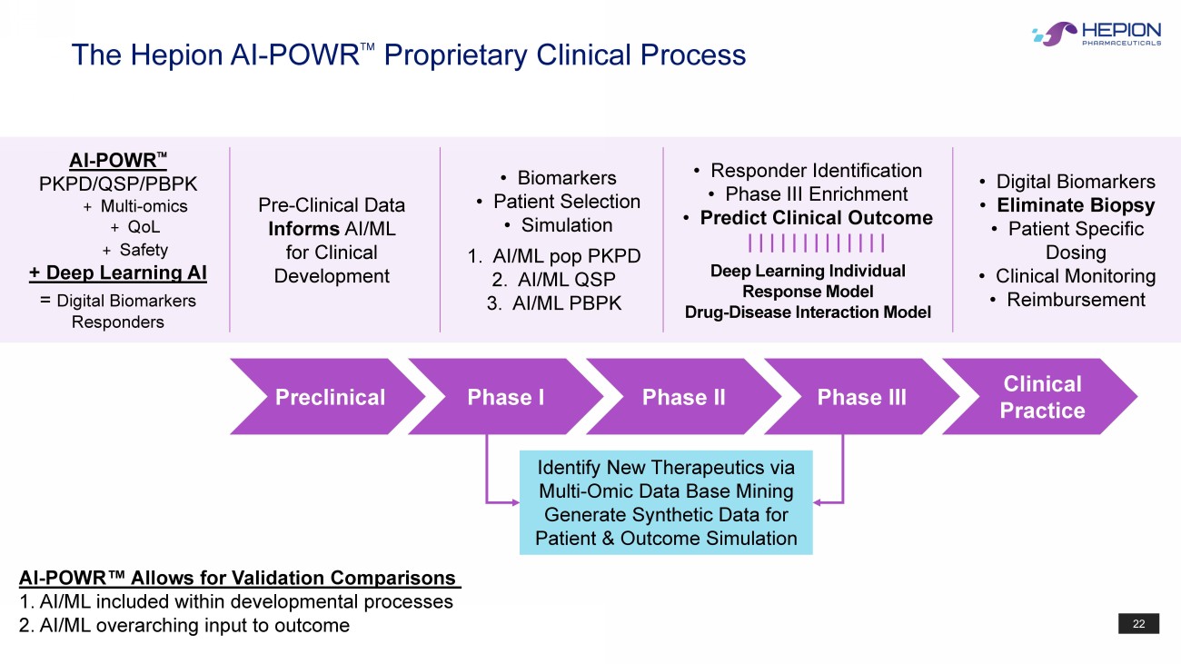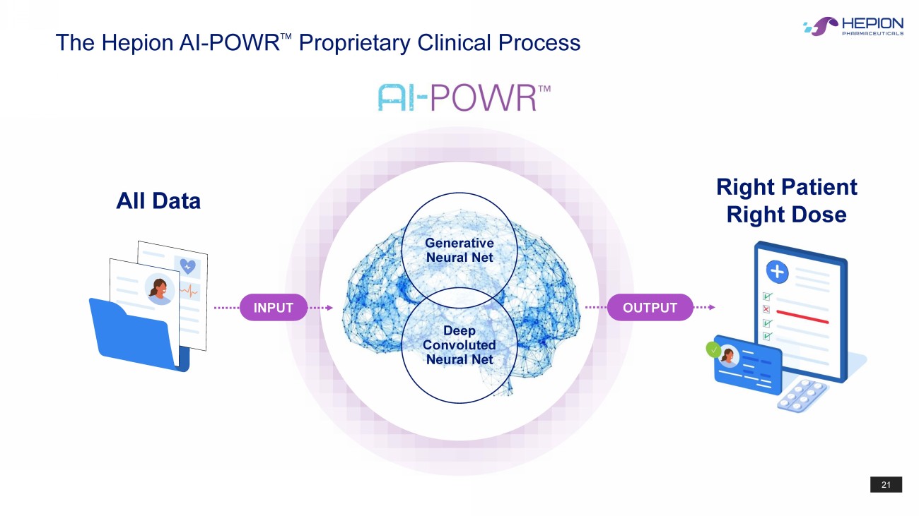 21 Right Patient Right Dose The Hepion AI - POWR Proprietary Clinical Process All Data Generative Neural Net Deep Convoluted Neural Net INPUT OUTPUT