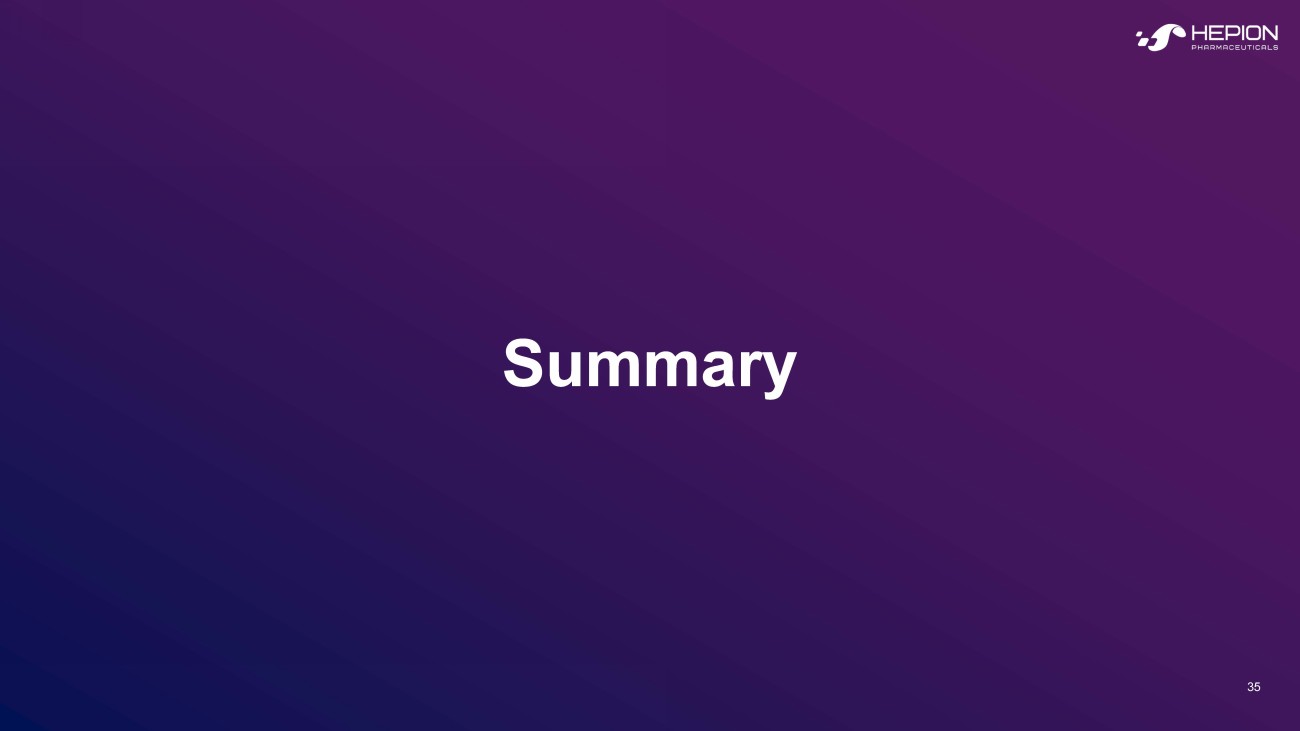 23 Illustration of Hepion’s AI - POWR w for Rencofilstat (RCF) * Genes (number) Predictive Genes (number) AUROC Comment 1733 Statistically Significant 25 0.97 Highly Predictive for ProC3 Response Lipids (number) Predictive Lipids (number) AUROC Comment 443 Statistically Significant 25 0.74 Highly Predictive for ProC3 Response Clinical Labs AUROC Comment 443 Statistically Significant 0.56 Poorly Predictive for ProC3 Response * Key genes identified demonstrate RCF – CypA and B interaction in NASH subjects ProC3 reduction (analogous to Fibrosis Score Response) associated with RCF blood concentrations of: • 964.2 ng/mL (trough) • 1160 ng/mL (2 - hour) Efficacious blood concentrations attained by day 14 and day 1 for 75 and 225 mg RCF, respectively, suggesting a third dosing cohort of 150 mg in future trials