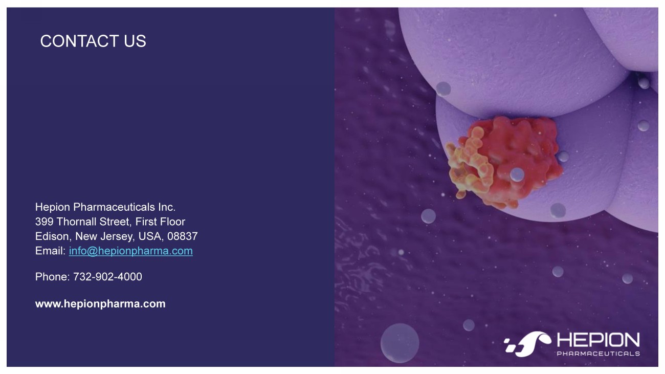 CONTACT US Hepion Pharmaceuticals Inc. 399 Thornall Street, First Floor Edison, New Jersey, USA, 08837 Email: info@hepionpharma.com Phone: 732 - 902 - 4000 www.hepionpharma.com