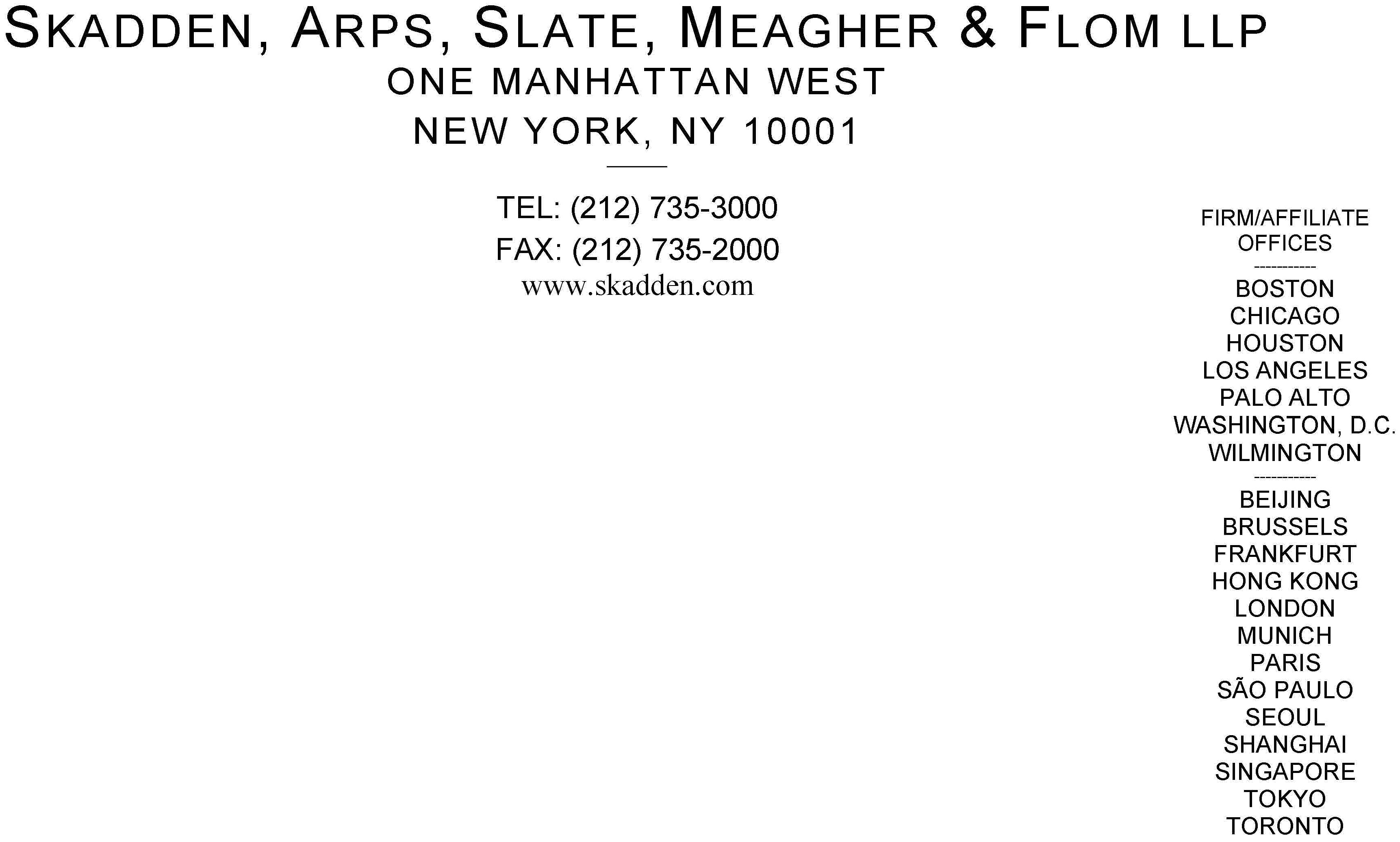 /s/ Skadden, Arps, Slate, Meagher & Flom LLP