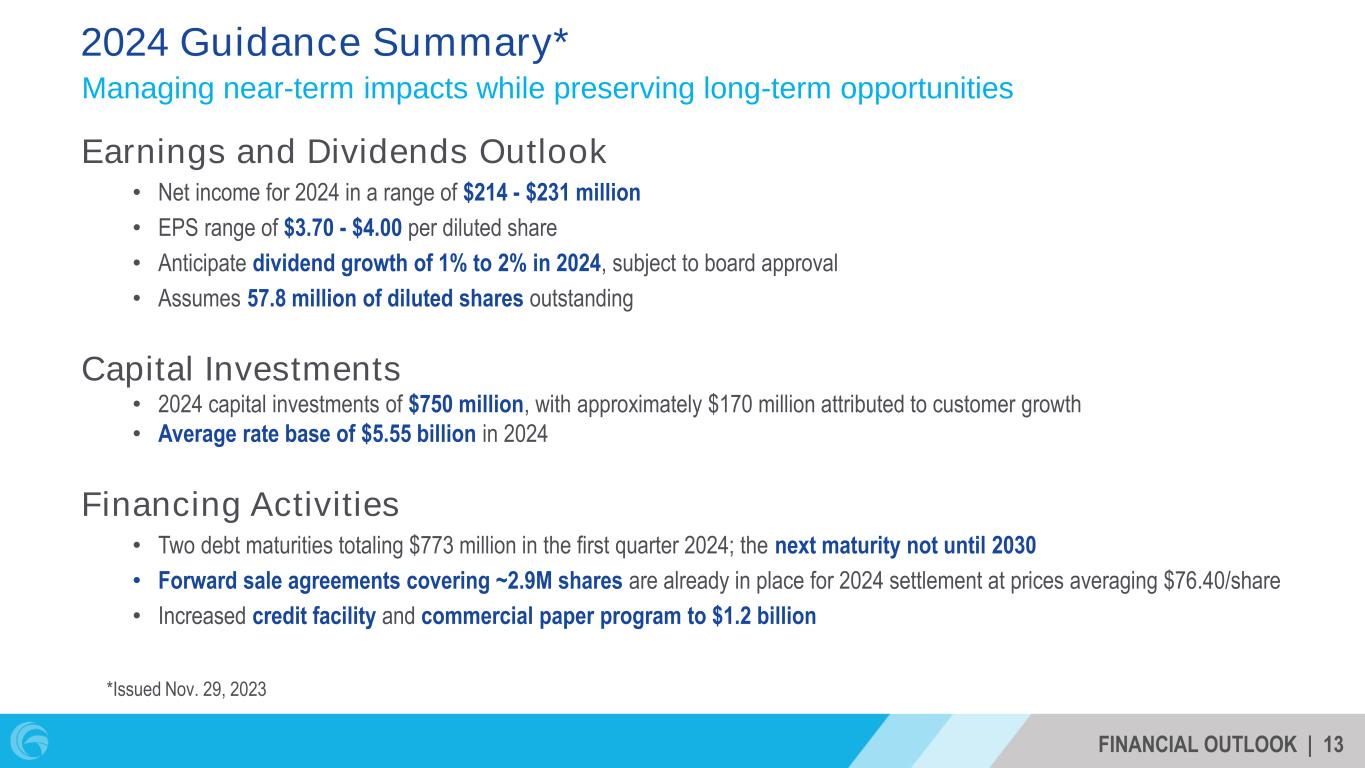 November 2023 2024 FINANCIAL GUIDANCE Delivering Reliable & Affordable Energy