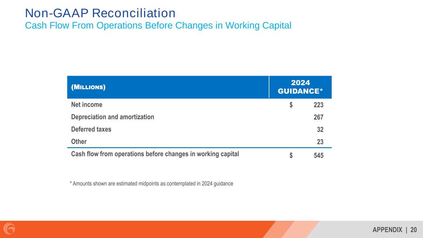 APPENDIX | 20 (MILLIONS) 2024 GUIDANCE* Net income $ 223 Depreciation and amortization 267 Deferred taxes 32 Other 23 Cash flow from operations before changes in working capital $ 545 Non-GAAP Reconciliation Cash Flow From Operations Before Changes in Working Capital * Amounts shown are estimated midpoints as contemplated in 2024 guidance