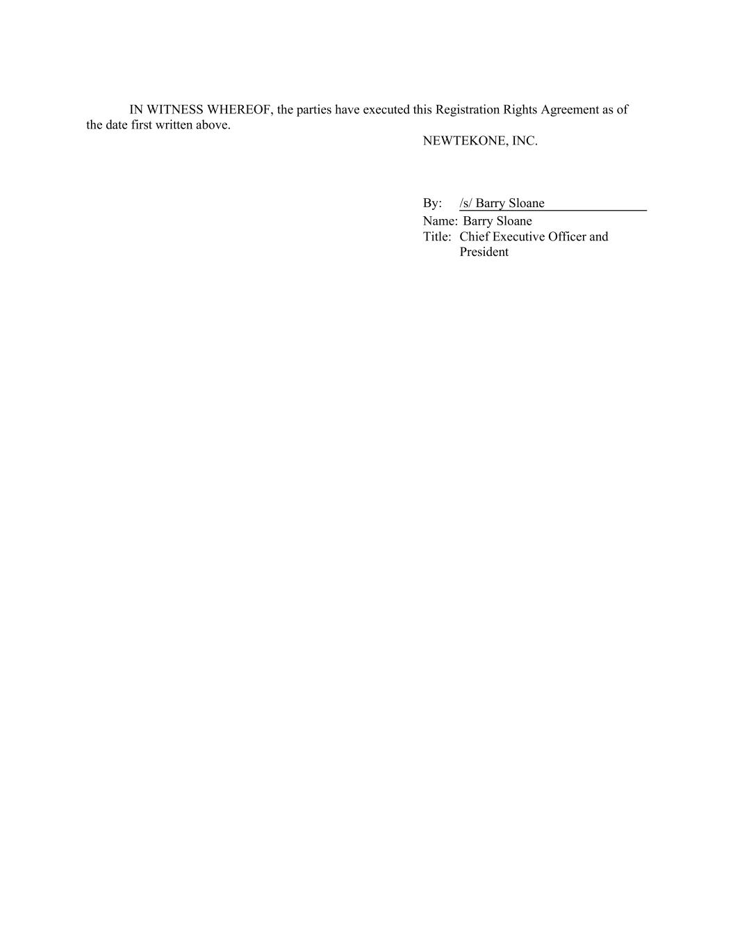 IN WITNESS WHEREOF, the parties have executed this Registration Rights Agreement as of the date first written above. NEWTEKONE, INC. By: /s/ Barry Sloane Name: Barry Sloane Title: Chief Executive Officer and President