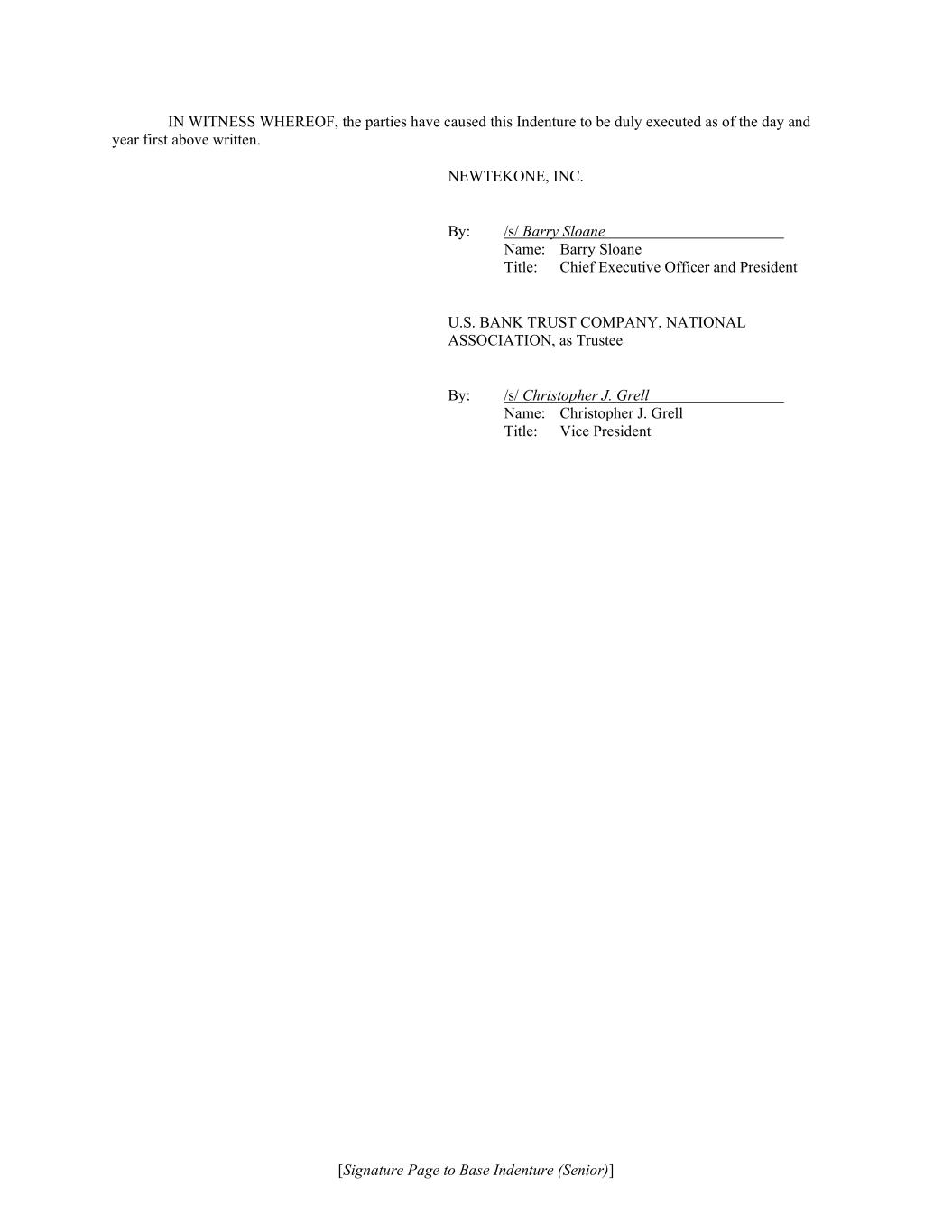 [Signature Page to Base Indenture (Senior)] IN WITNESS WHEREOF, the parties have caused this Indenture to be duly executed as of the day and year first above written. NEWTEKONE, INC. By: /s/ Barry Sloane Name: Barry Sloane Title: Chief Executive Officer and President U.S. BANK TRUST COMPANY, NATIONAL ASSOCIATION, as Trustee By: /s/ Christopher J. Grell Name: Christopher J. Grell Title: Vice President