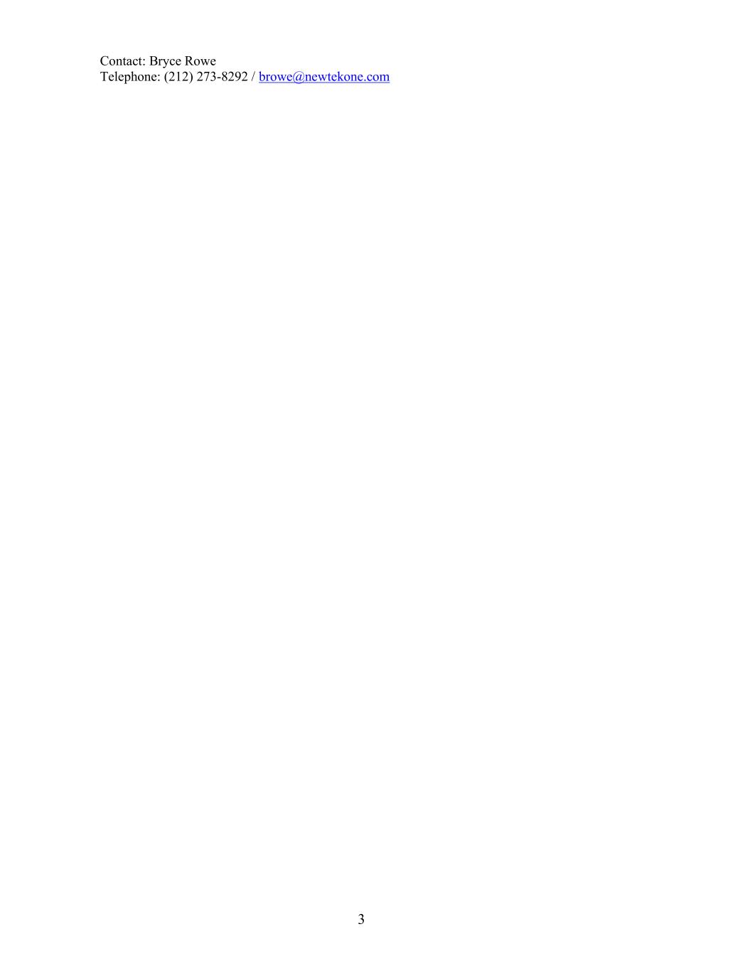 3 Contact: Bryce Rowe Telephone: (212) 273-8292 / browe@newtekone.com