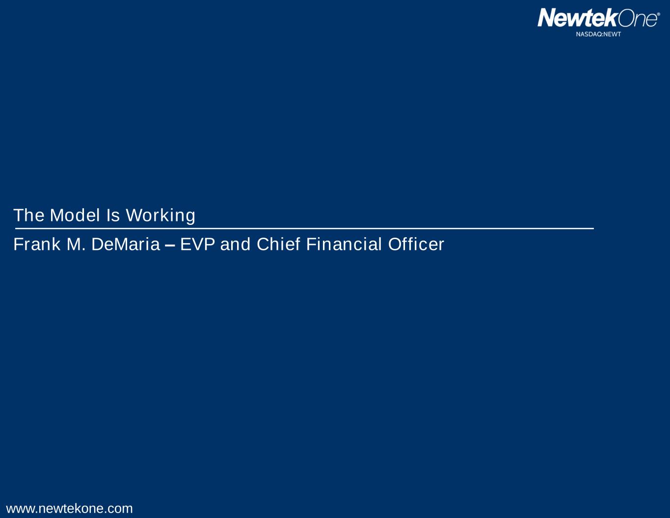 www.newtekone.com The Model Is Working Frank M. DeMaria – EVP and Chief Financial Officer