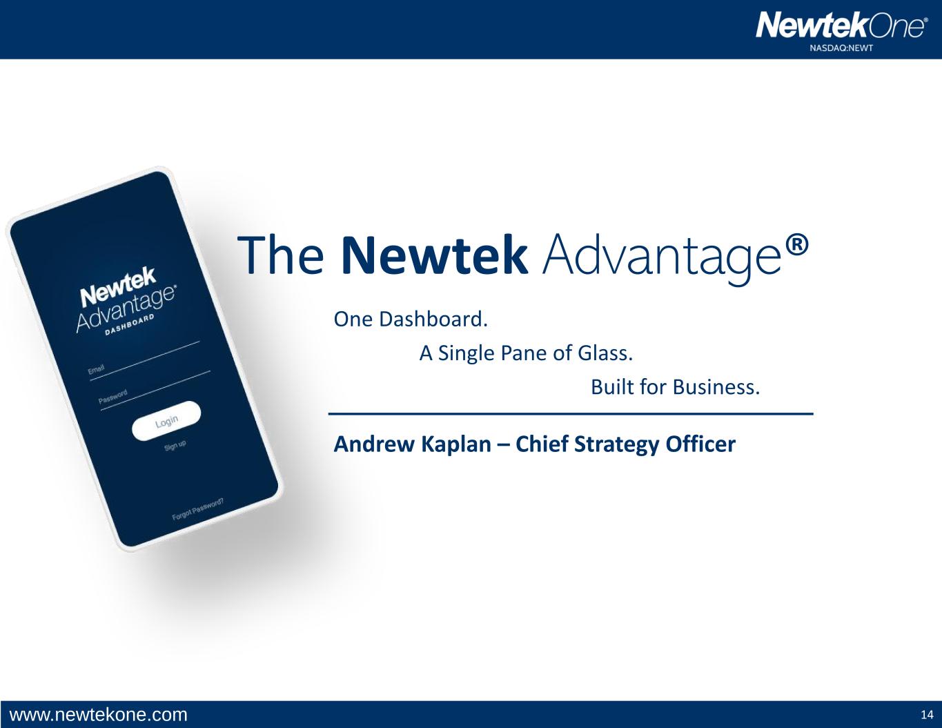 www.newtekone.com 14 The Newtek Advantage® One Dashboard. A Single Pane of Glass. Built for Business. Andrew Kaplan – Chief Strategy Officer